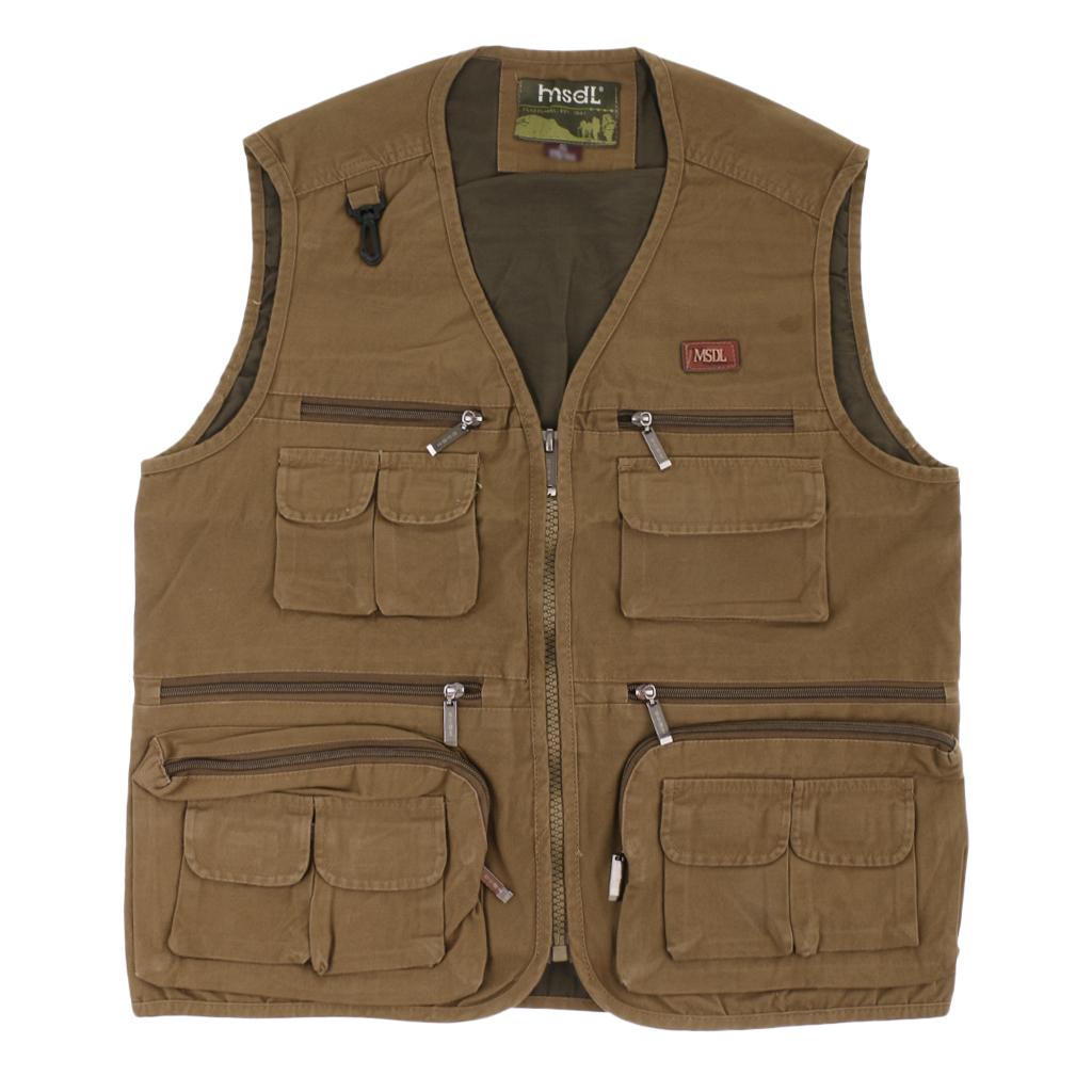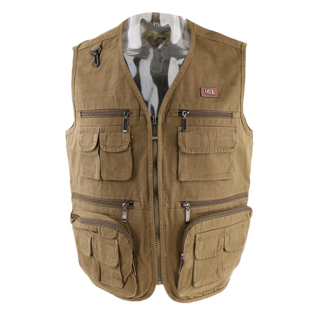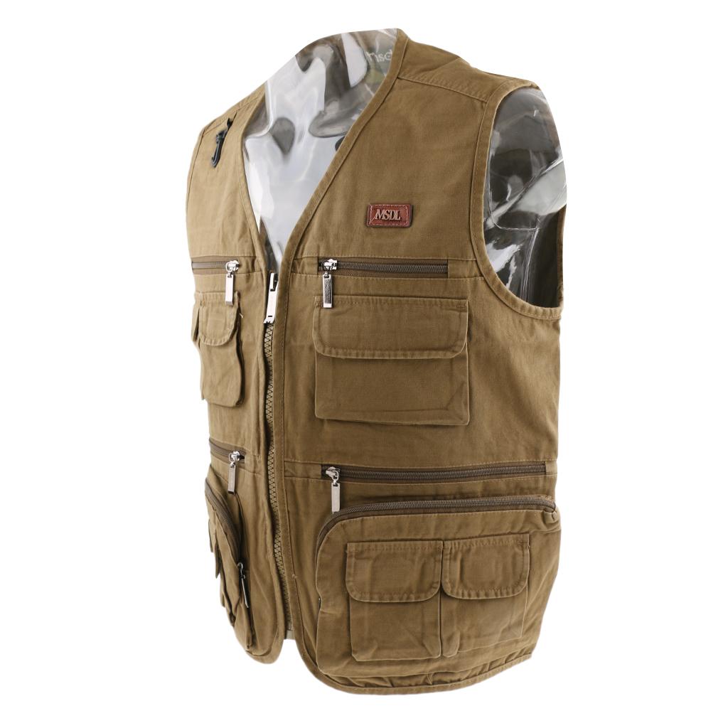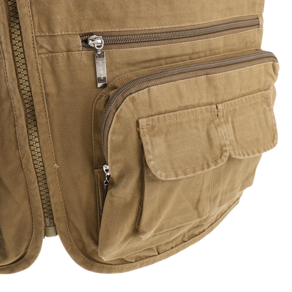 Multi Pocket Lightweight Casual Gilet Fishing Vest Waistcoat 4XL khaki