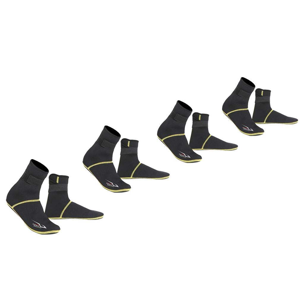 Has Loop fasten tape, can be adjusted to better prevent water entering your feet Thickened 3mm diving socks, can wear it in swim fins, protect your feet hurting by coral reef