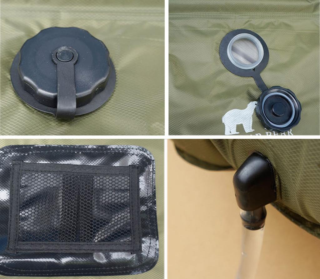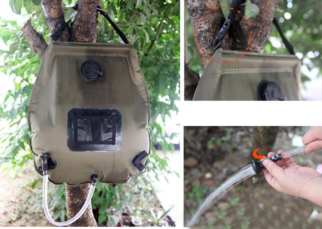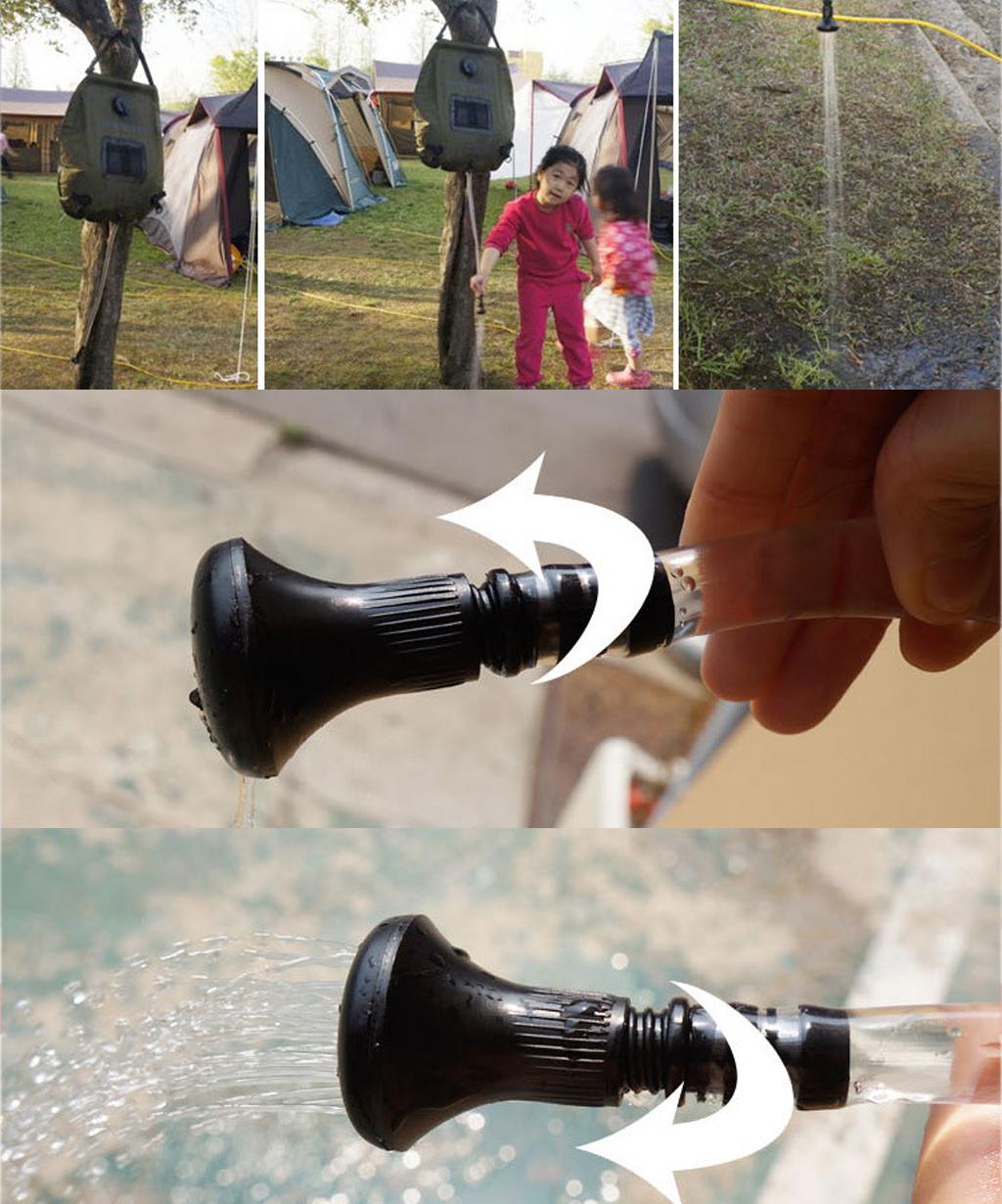 • It can be hung on the car or tree branched to take a bath when you are camping or hiking.