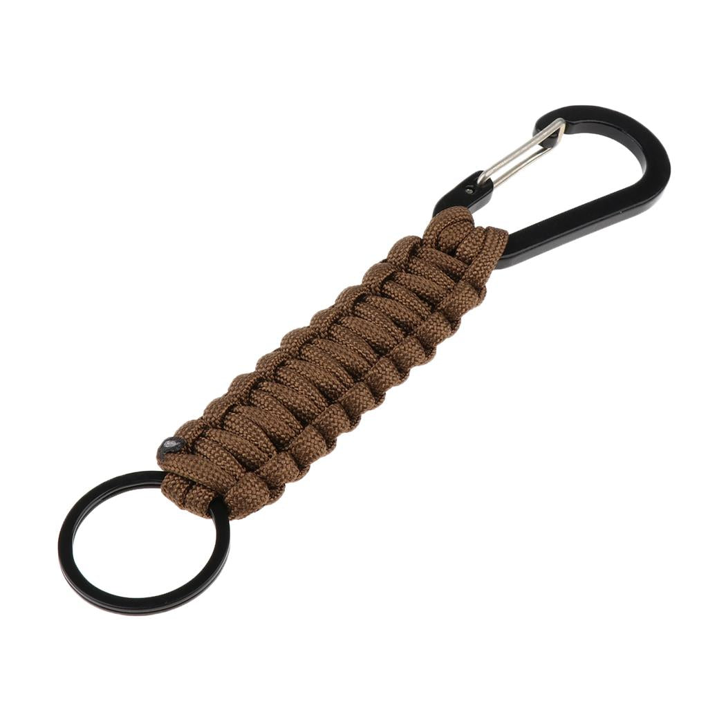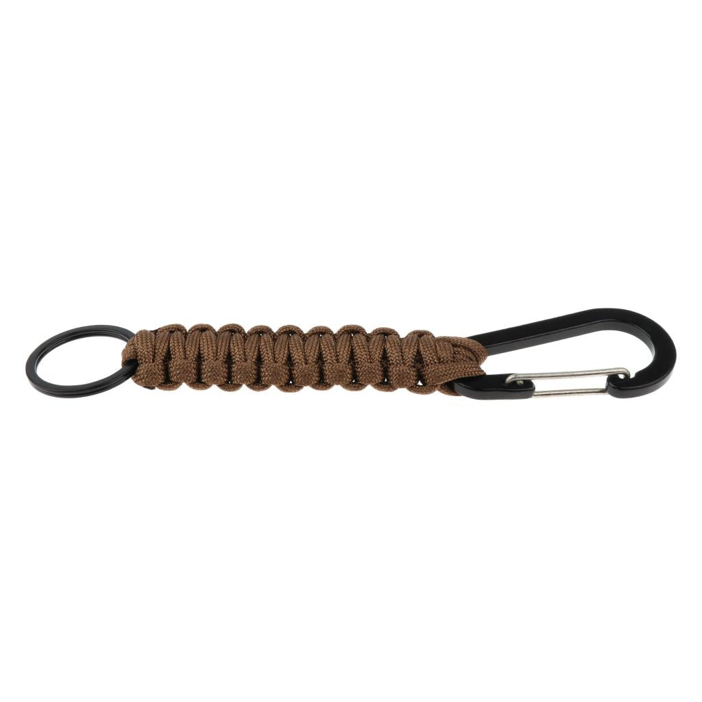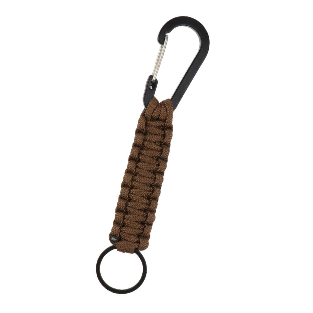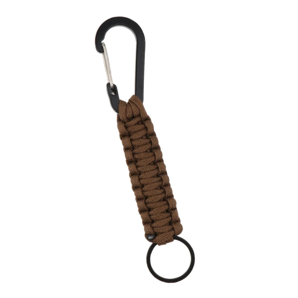 Outdoor Camping Hiking Molle 7 Strand Paracord Keychain Carabiner Brown