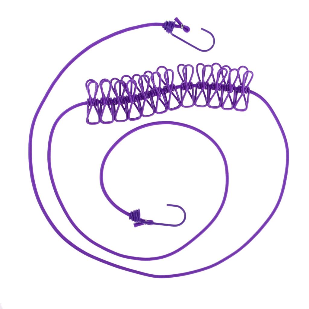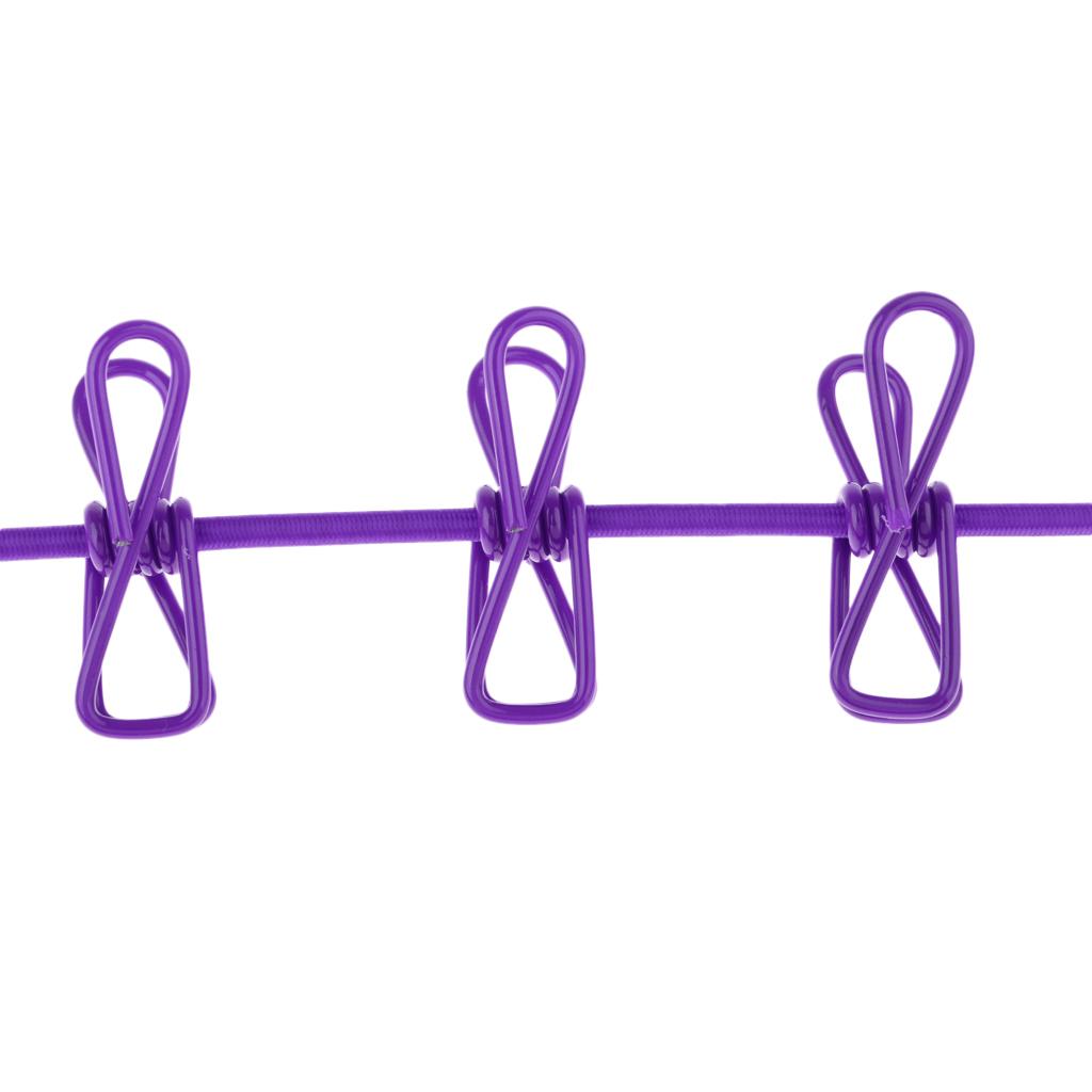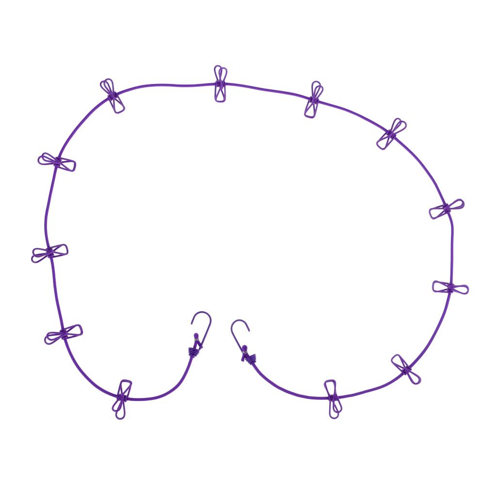 Outdoor Camping Tent Lamp Chain Clothesline with 12 Clamp Clips Hook Purple