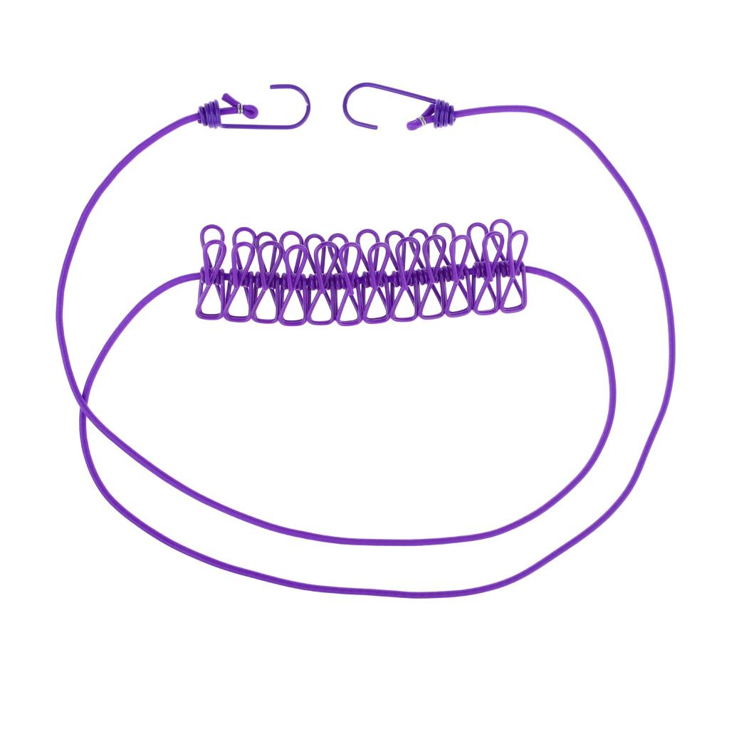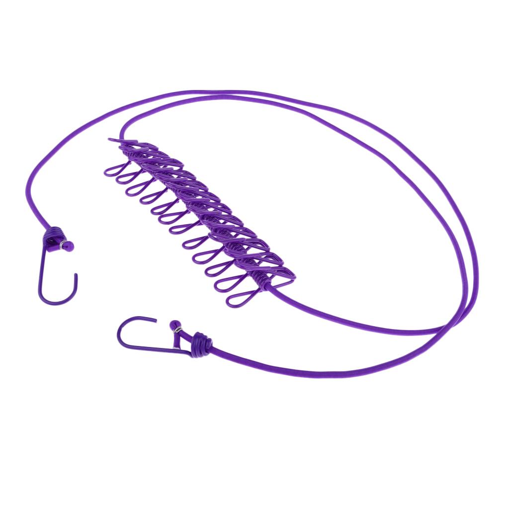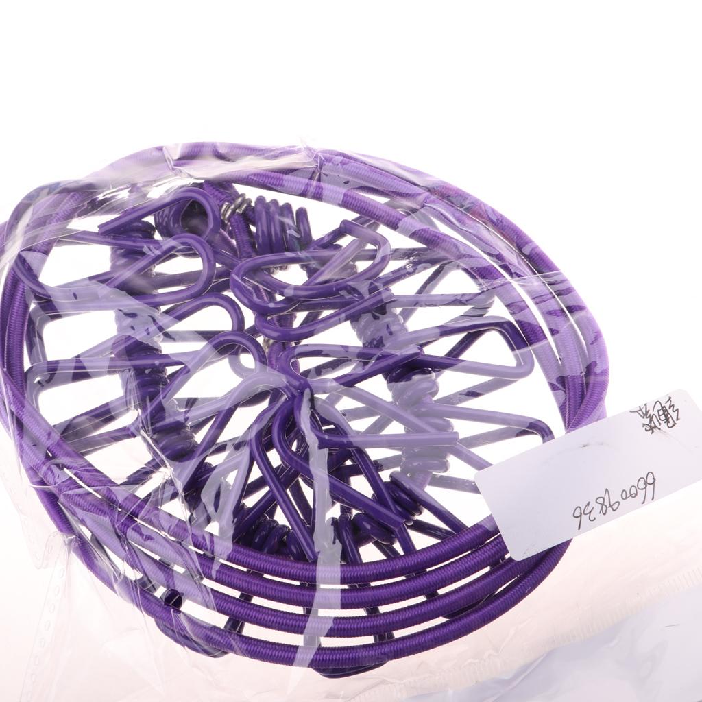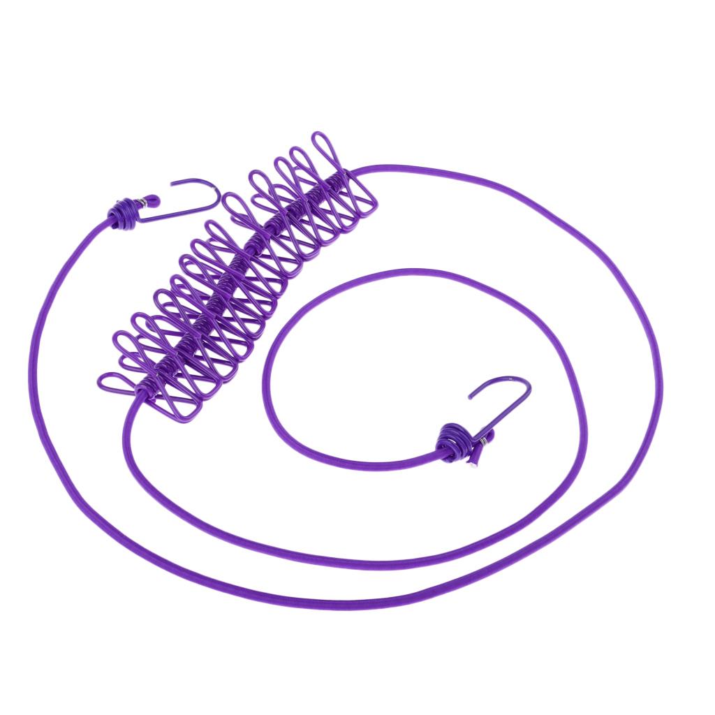 Outdoor Camping Tent Lamp Chain Clothesline with 12 Clamp Clips Hook Purple