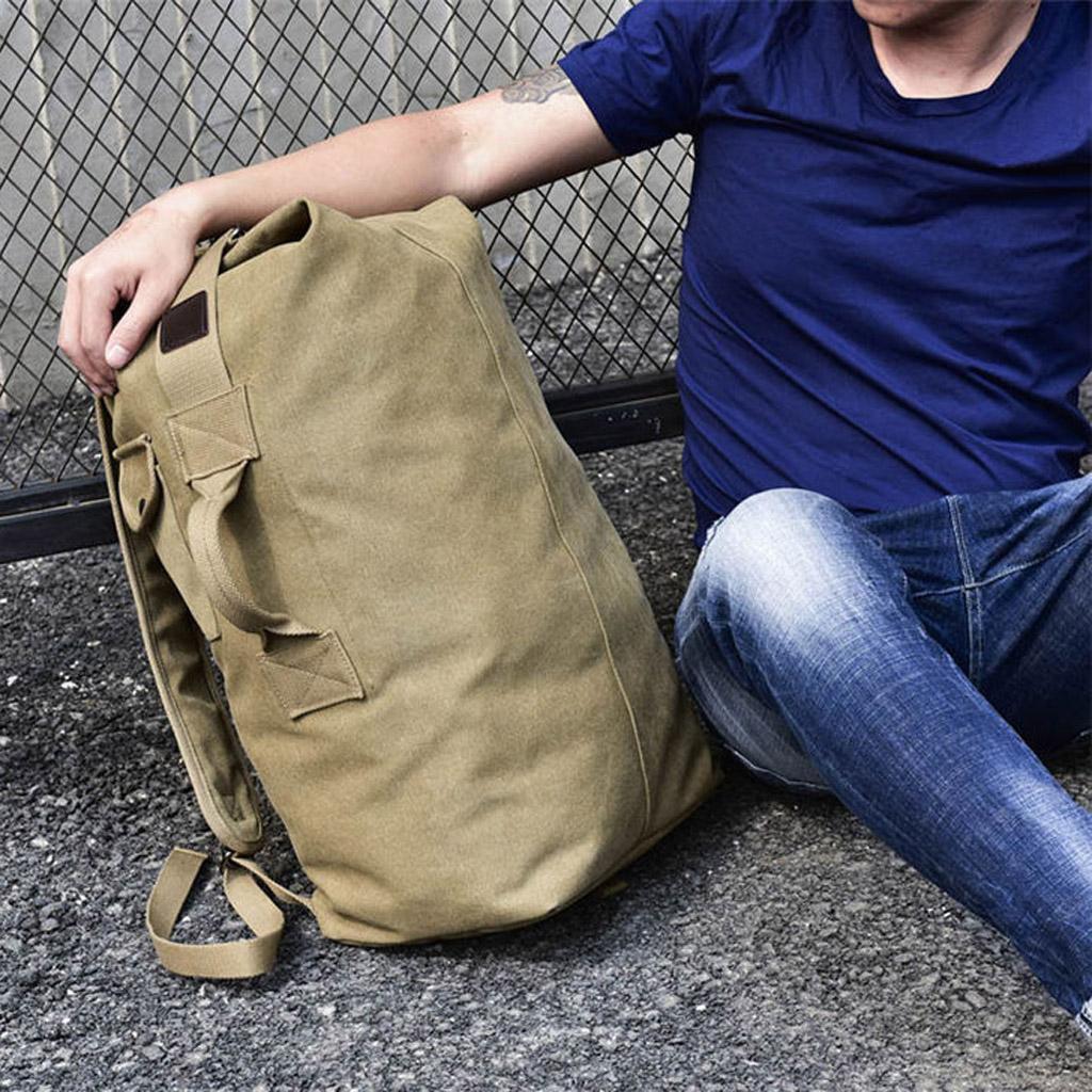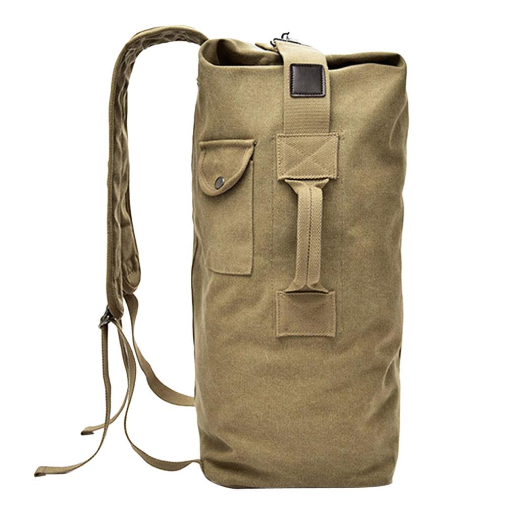 Outdoor Canvas Hiking Backpack Sport Rucksack Travel Duffel Bag Khaki S