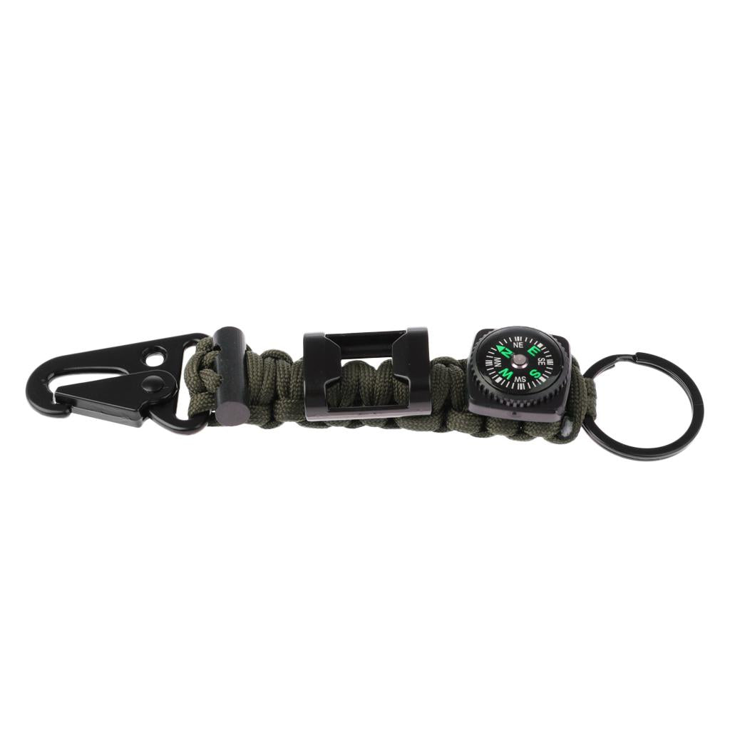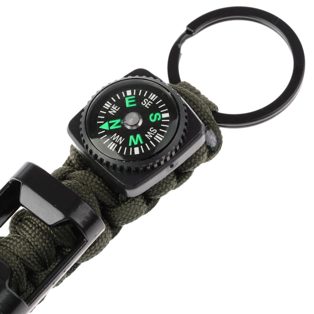 Outdoor Parachute Cord Lanyard w/ Compass Keychain Bottle Opener Green
