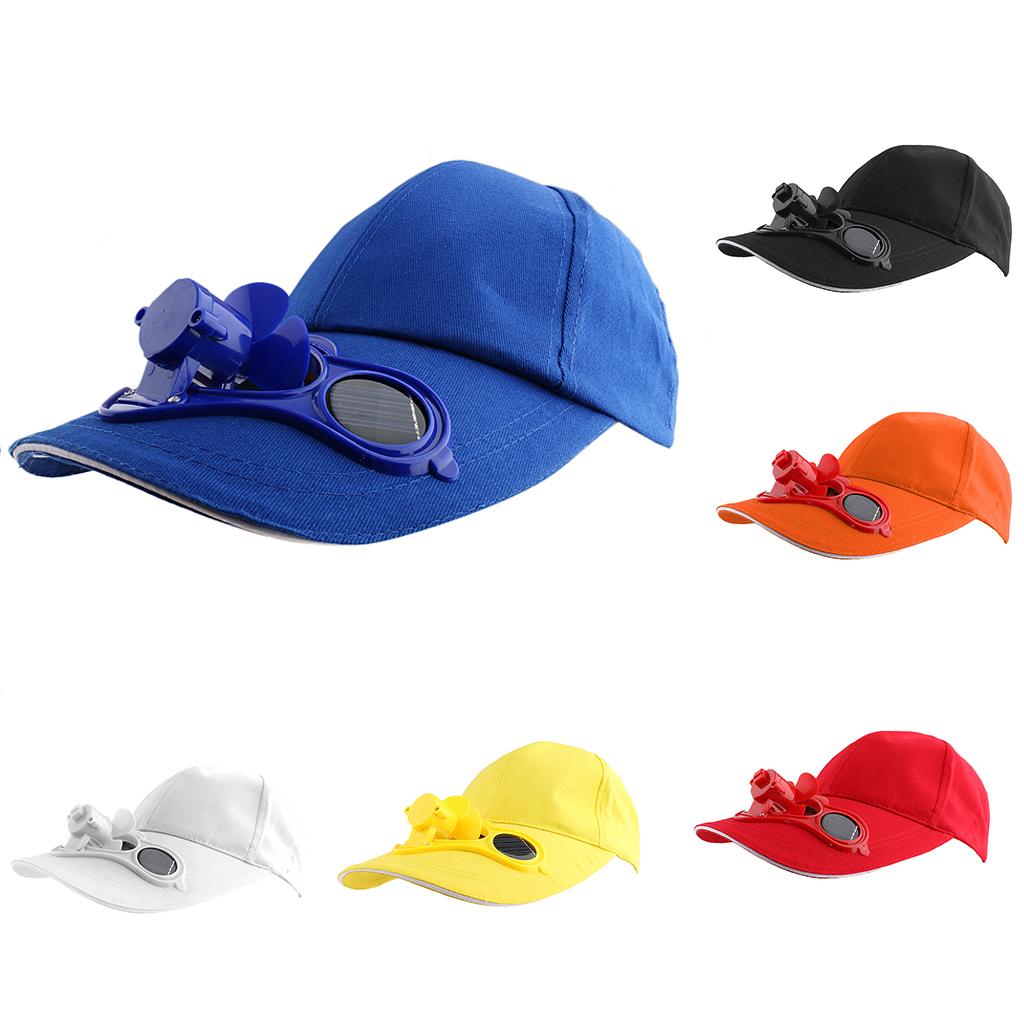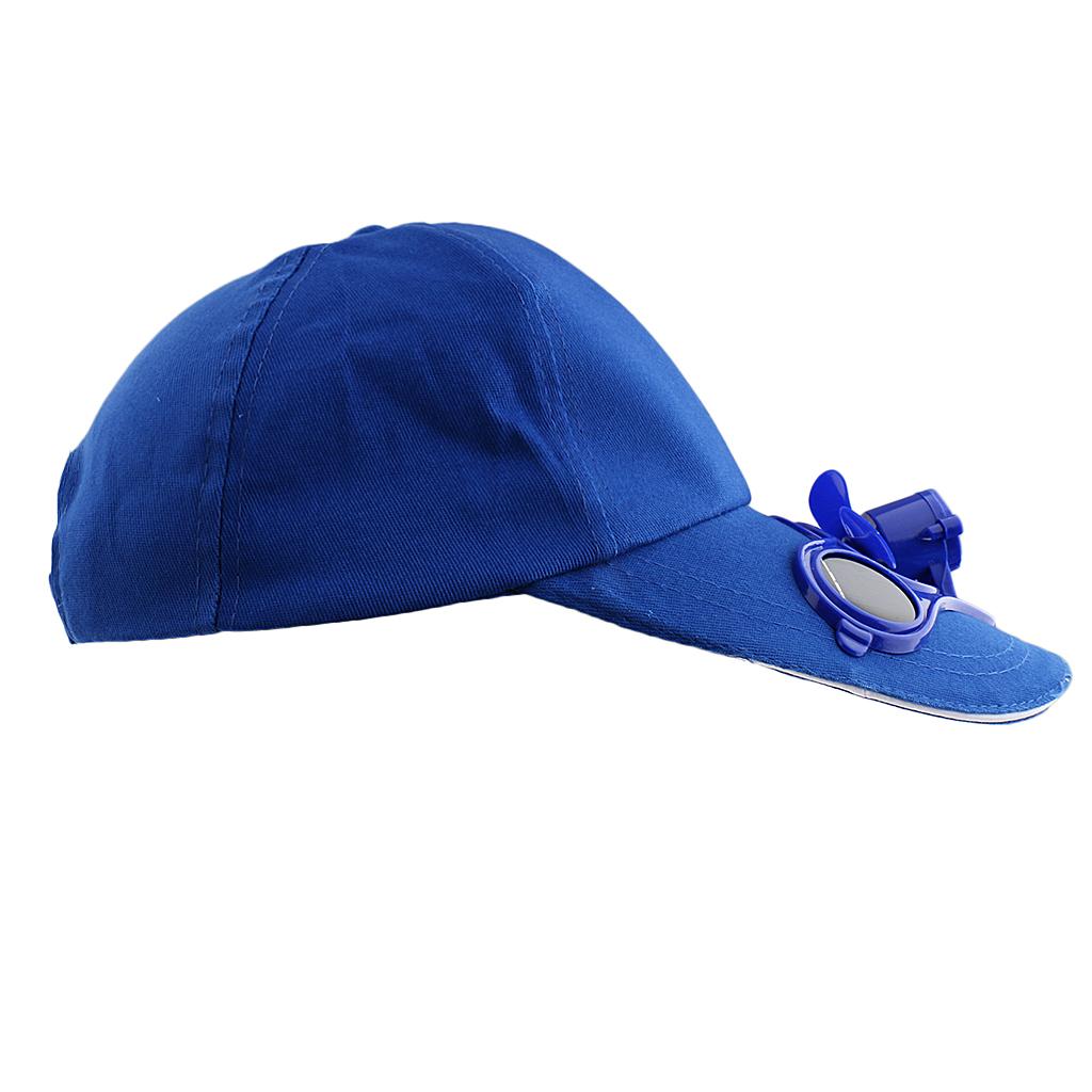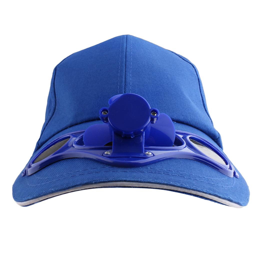 Outdoor Sports Fishing Baseball Golf Solar Power Cooling Fan Hat Cap Blue