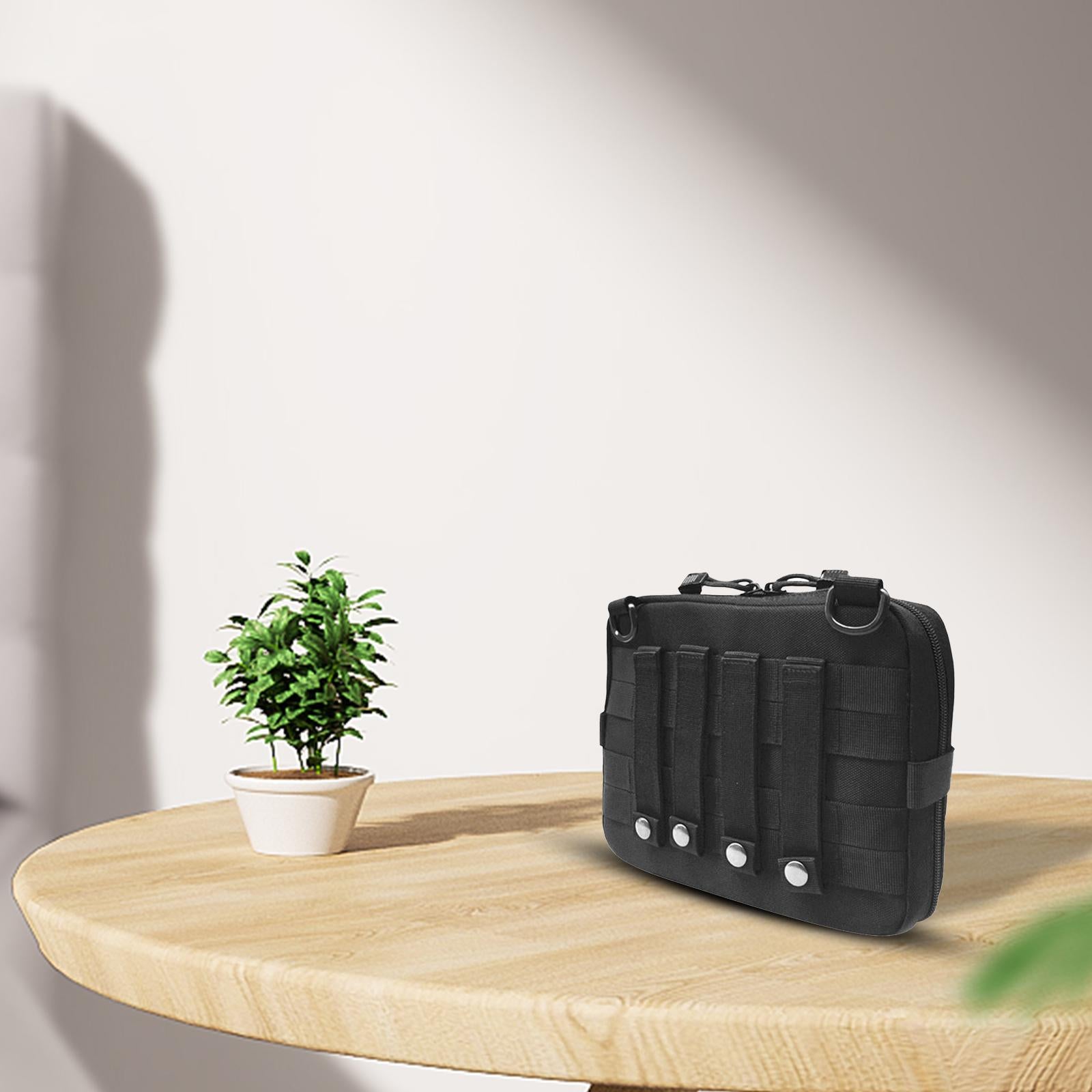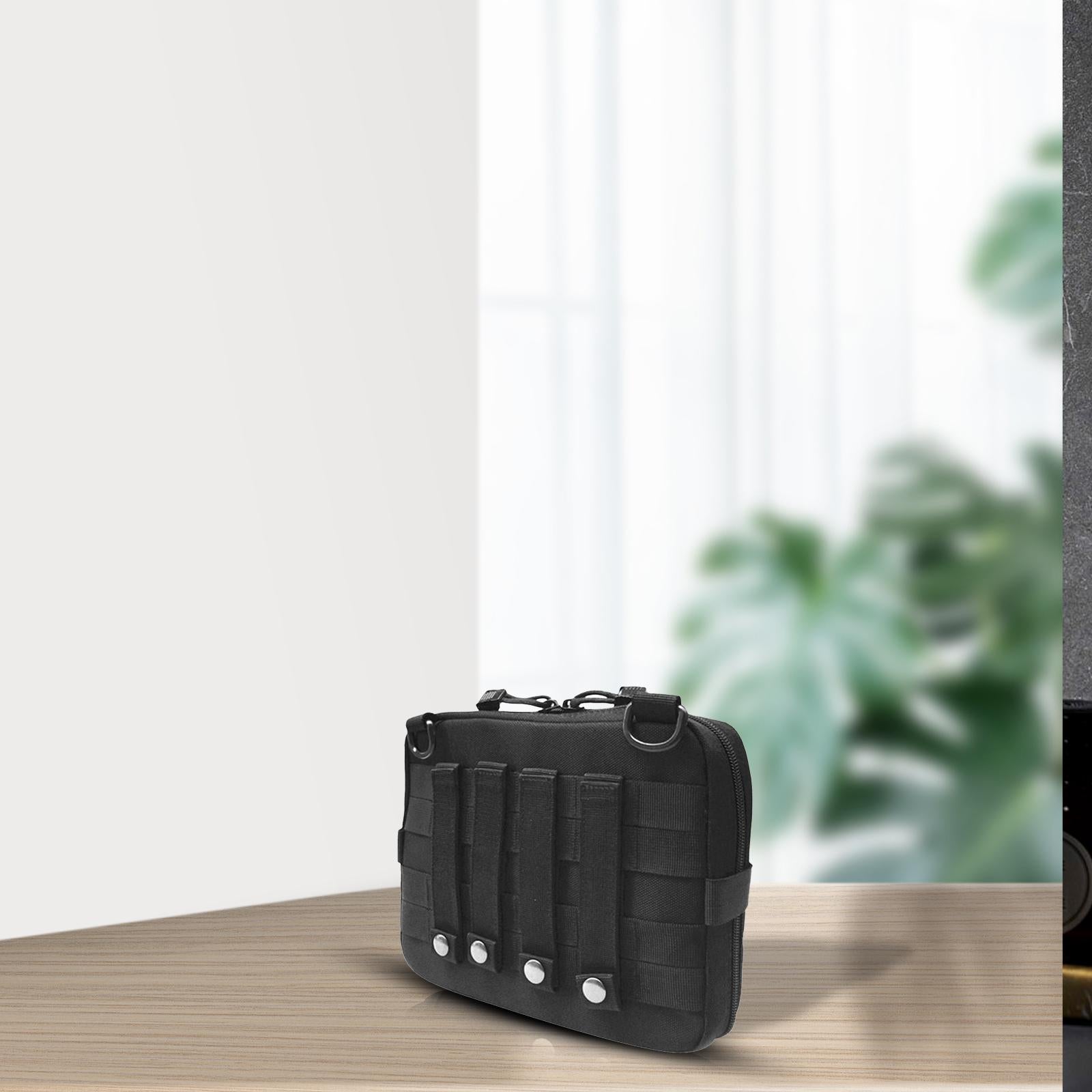 The Molle attachments with buckle straps allow you to secure it to belt, vest, backpack etc.