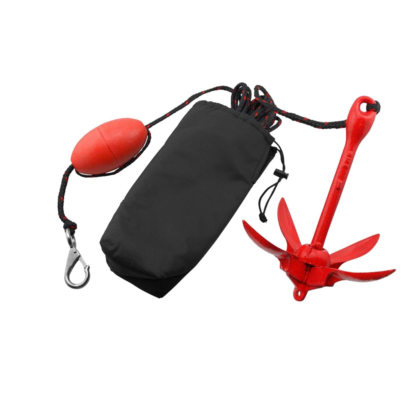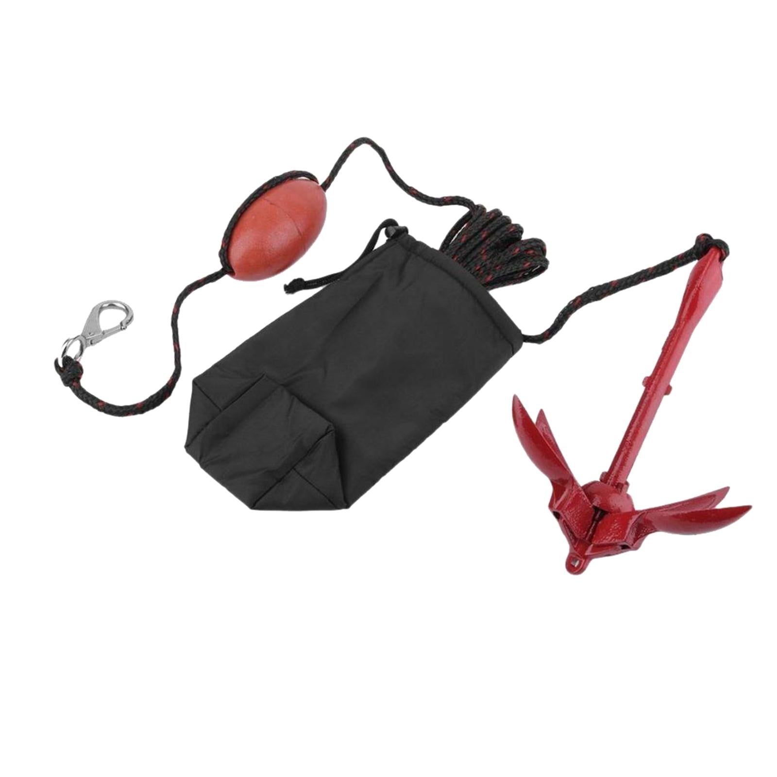 Heavy duty folding 1.5 kg/3.3 lb stainless steel grapnel anchor with 11m/36ft rope, red maker buoy ball and strong snap hook