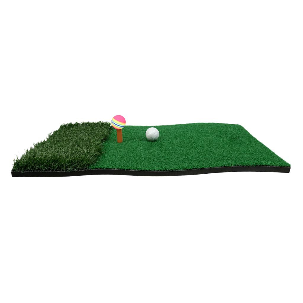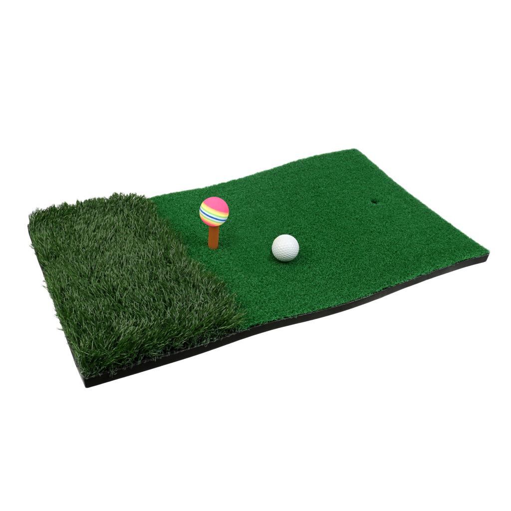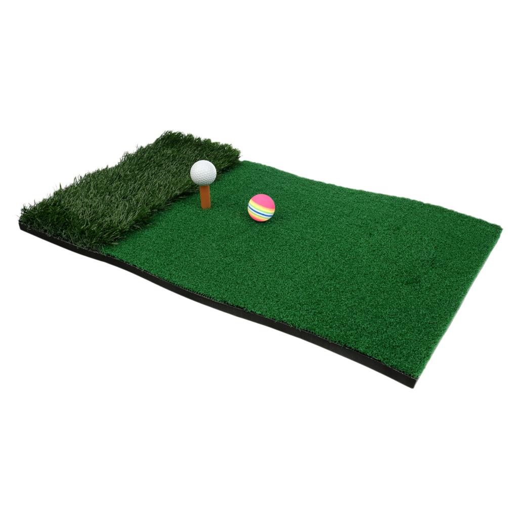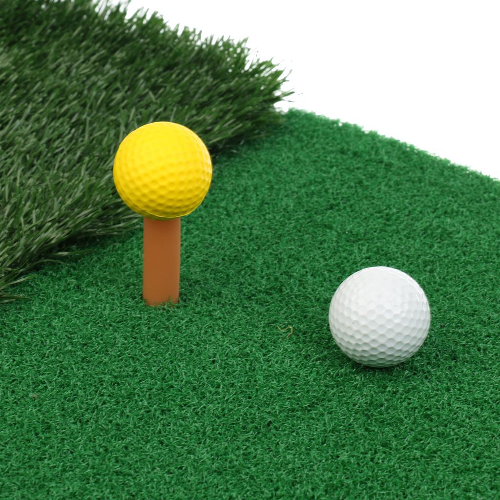 Comes with 1 piece mat, 1 piece tee, 2 pieces hard golf balls, 1 piece soft golf ball
