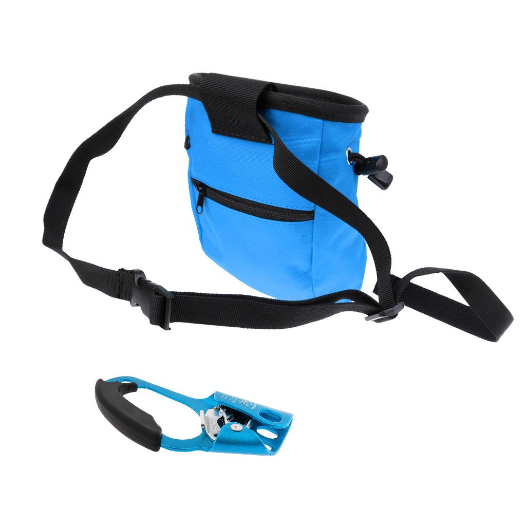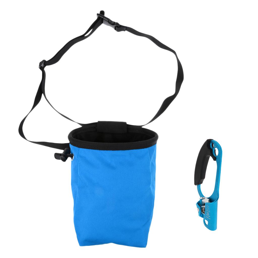 The chalk bag with tight drawstring closure, keeps chalk from falling out