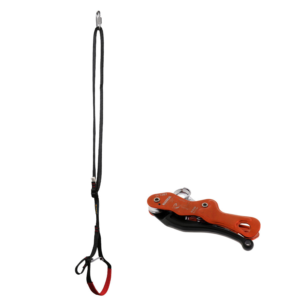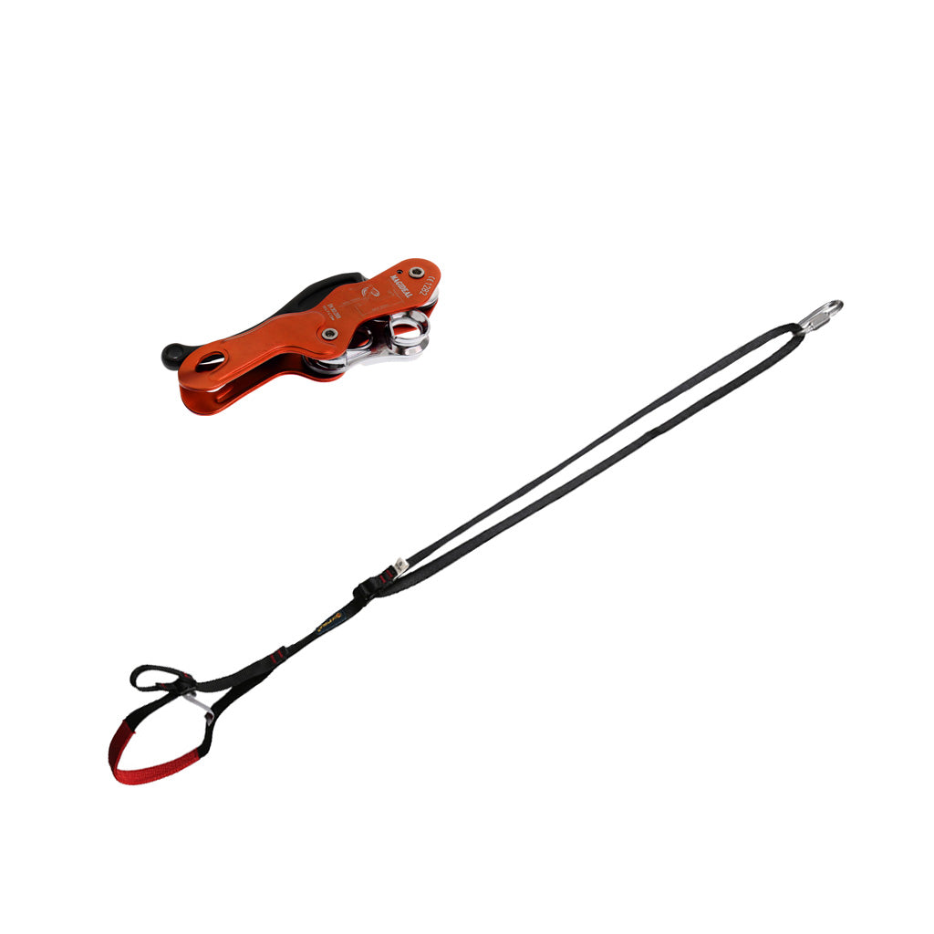 Used with a single climbing rope with diameters between 10-12 mm