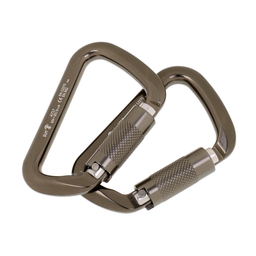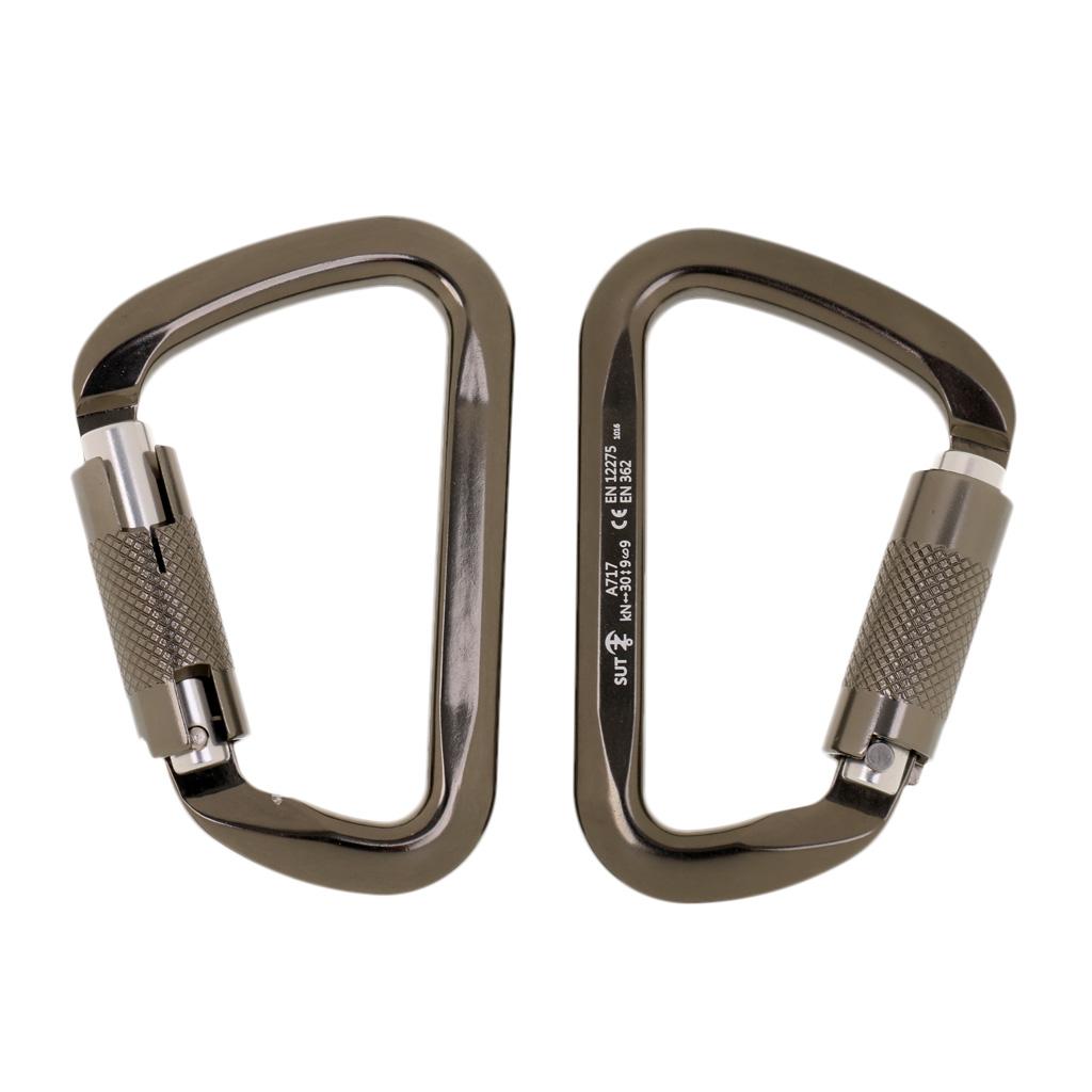 Carabiner: Aluminum magnesium alloy; 30KN/ 6600lbs, 193g/ 6.8oz (weight of 1 pair), 11 x 7cm/ 4.33 x 2.75 inches (L x W); CE certificated approved quality.