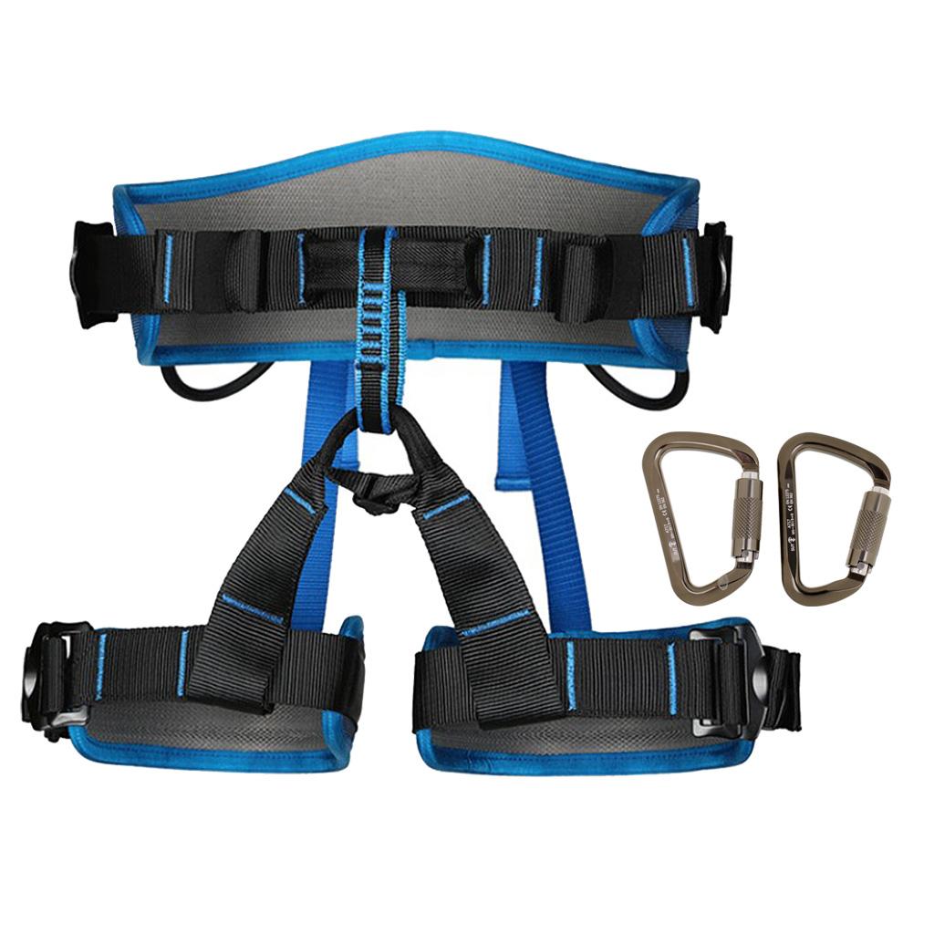 1 Set of Climbing Harness + 1 Pair 30KN D-Ring Auto Locking Carabiner (Both got the CE certification)