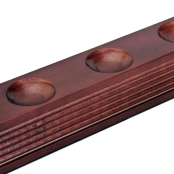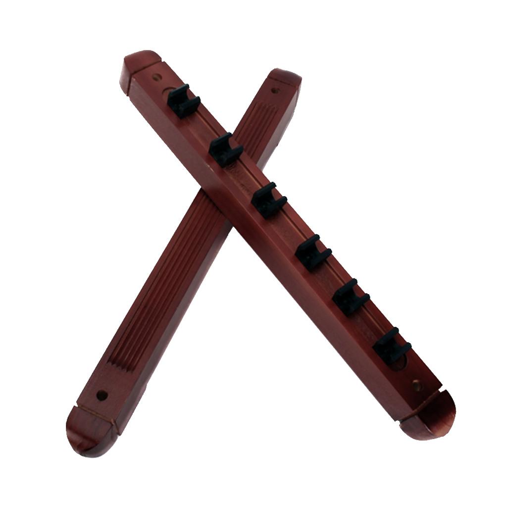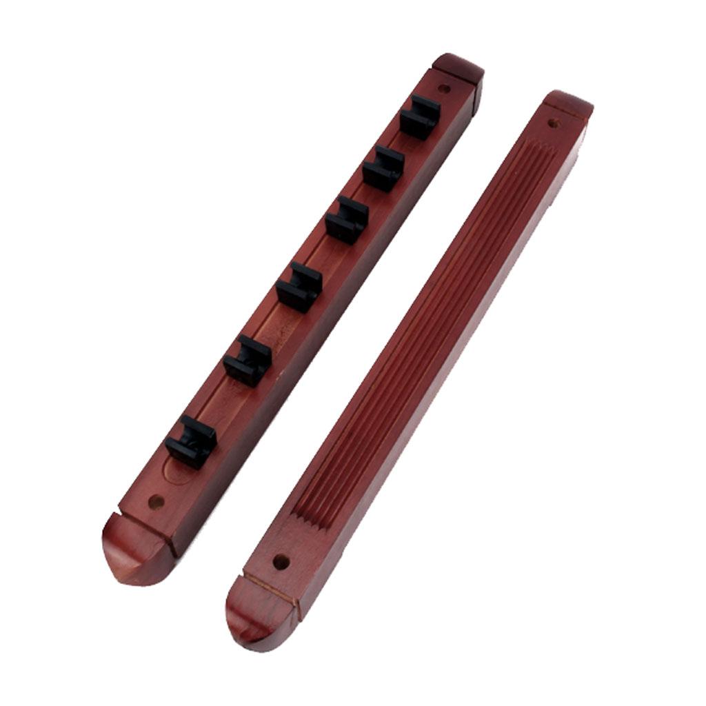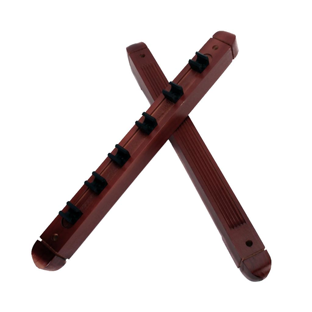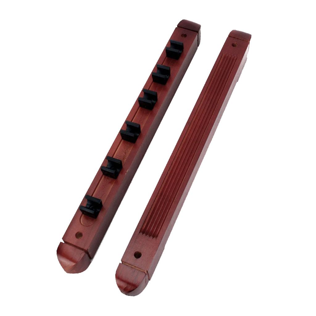 6-Cue Roman-Style Wall Rack will look great and work great with your pool table! This Wall Cue Rack holder holds 6 cues. This 6-Cue Roman-Style Wall Rack is made of solid hard wood, has gentle clips that won't hurt the cues.