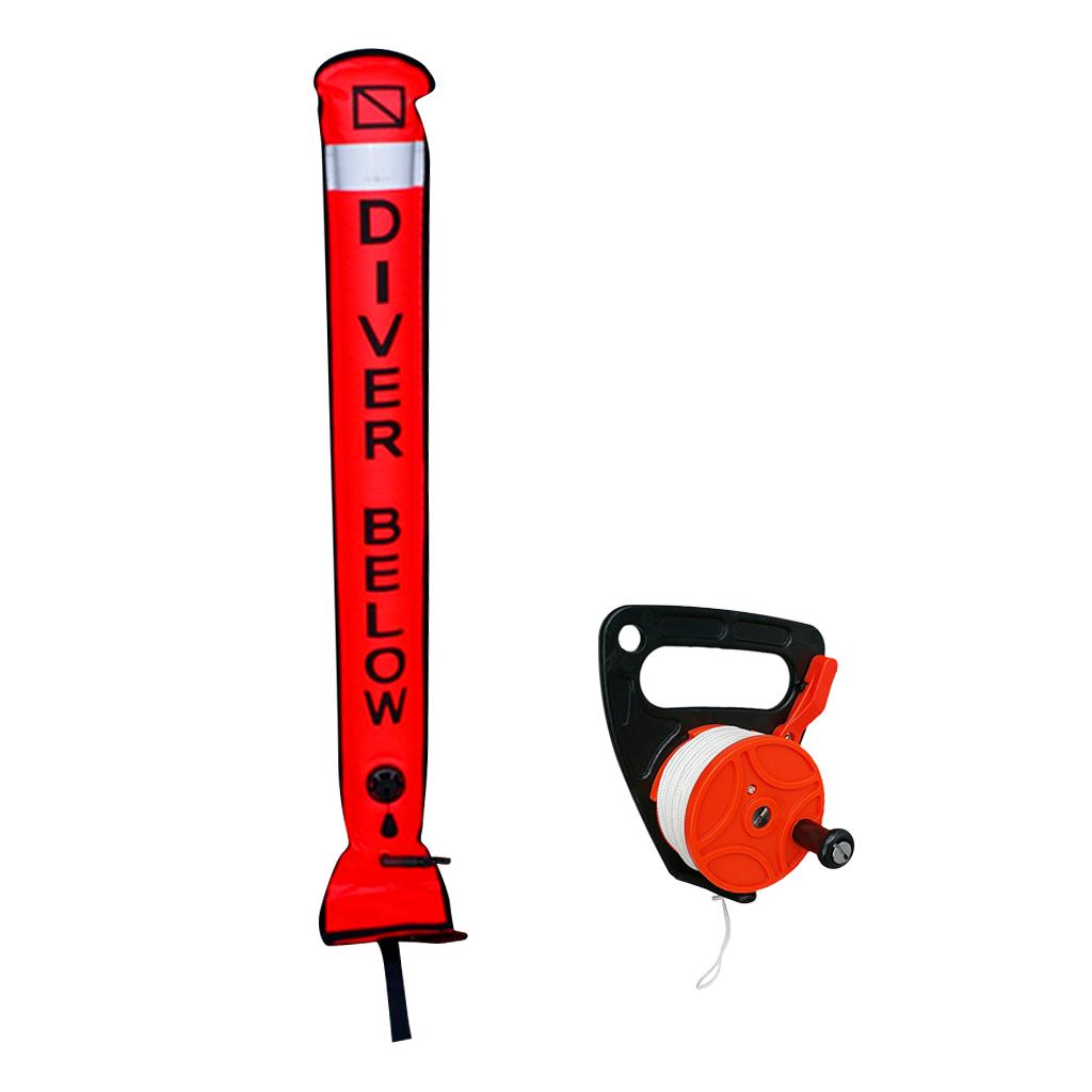 1 Piece scuba diving surface marker buoy with safety reflective tape, dive flag and 1 piece dive reel with 150ft white line and thumb/finger stopper