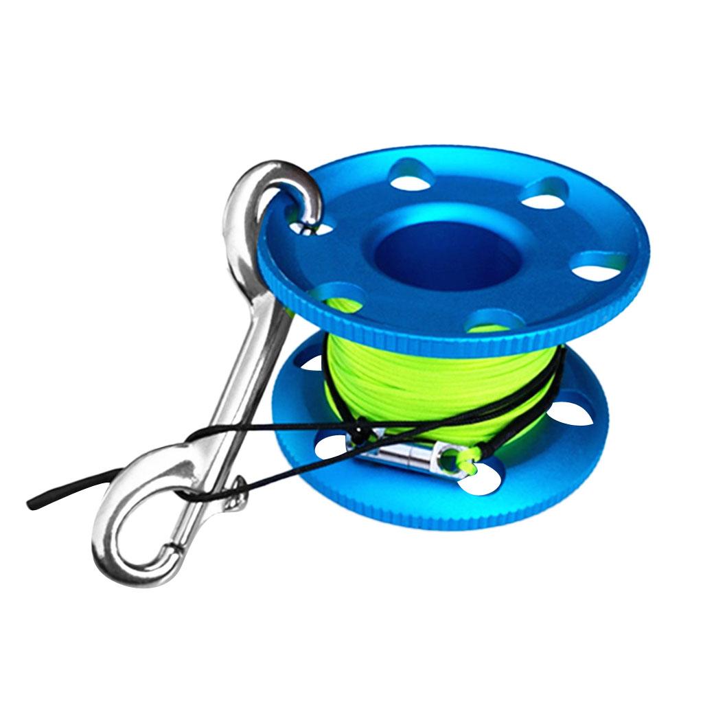 Scuba diving aluminum alloy finger spool reel with 30m/100ft high visibility line