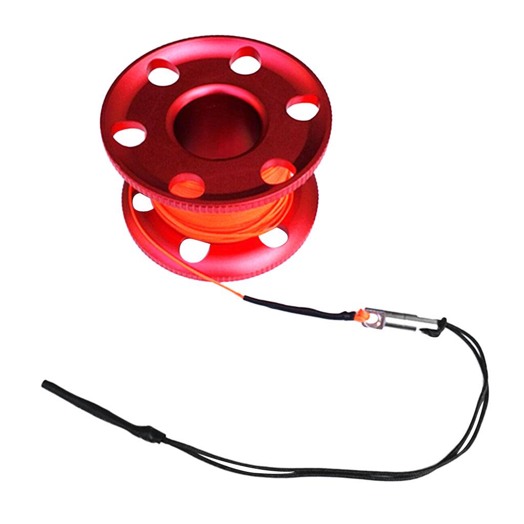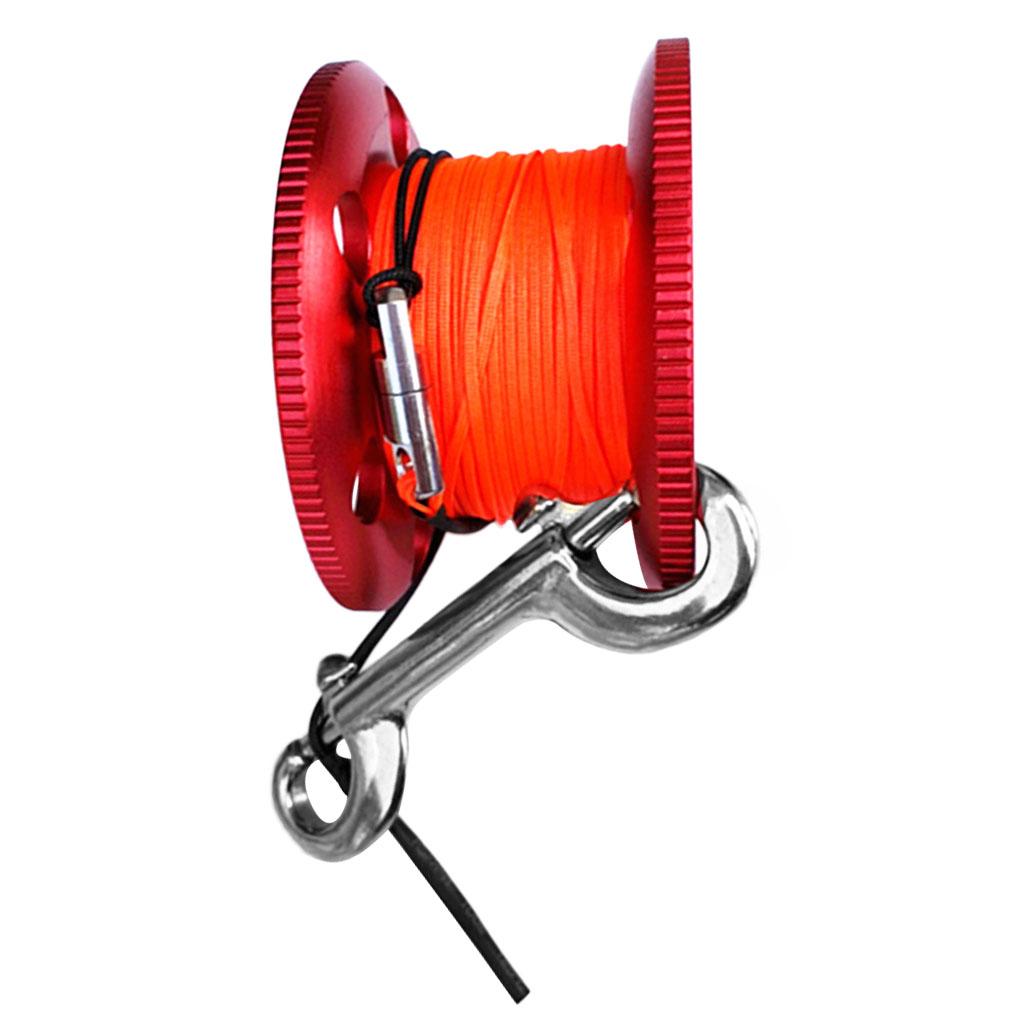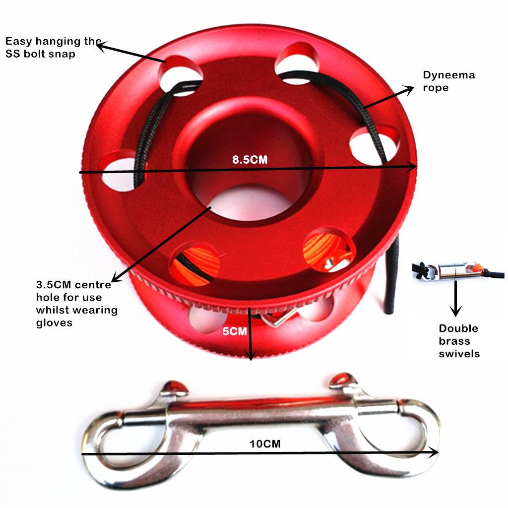 Scuba diving aluminum alloy finger spool reel with 30m/100ft high visibility line