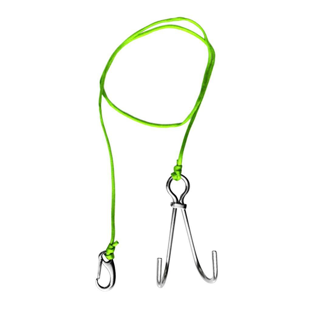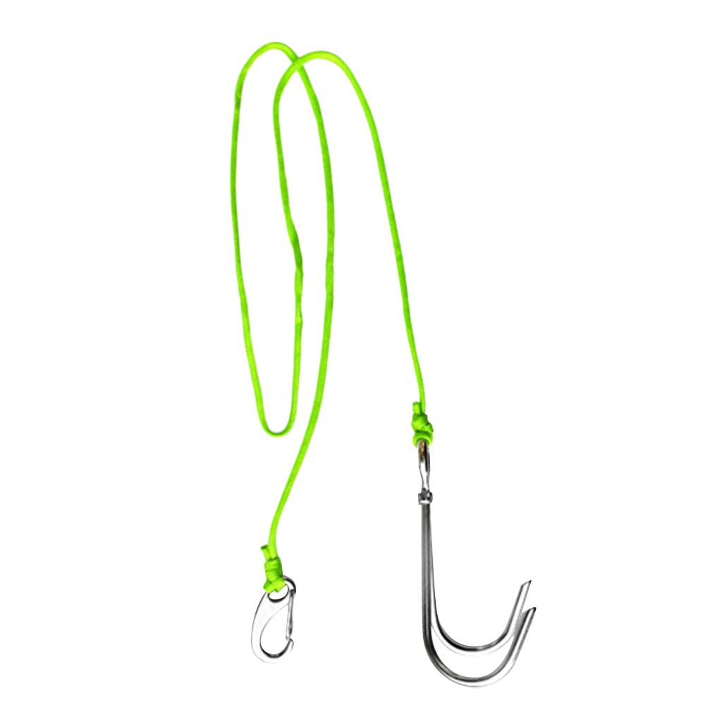 Scuba Diving Double Dual 316 Stainless Steel Reef Hook with Line Fluo Green