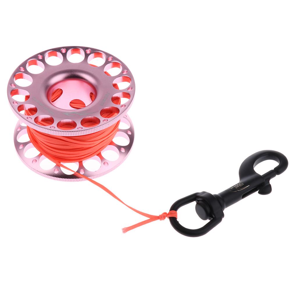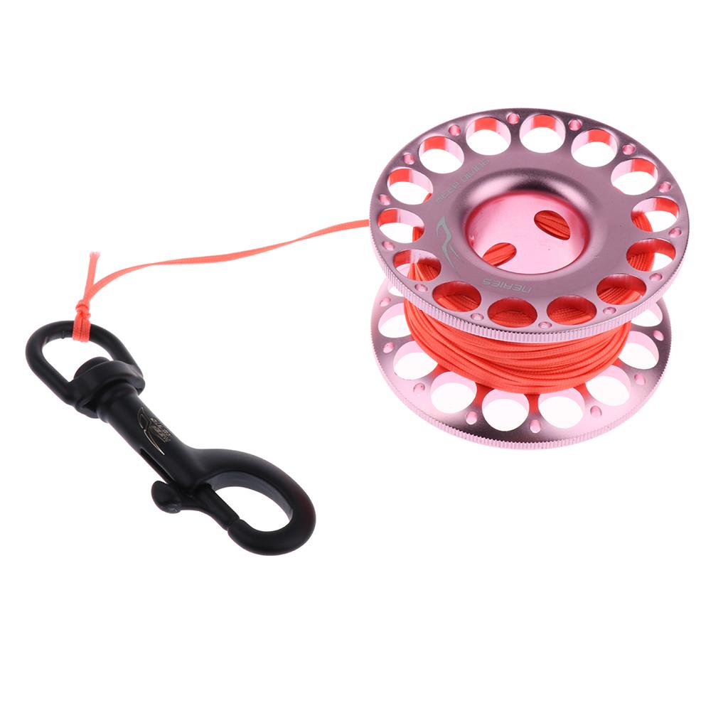 Scuba diving aluminum alloy finger spool reel with 30m/98ft high visibility line