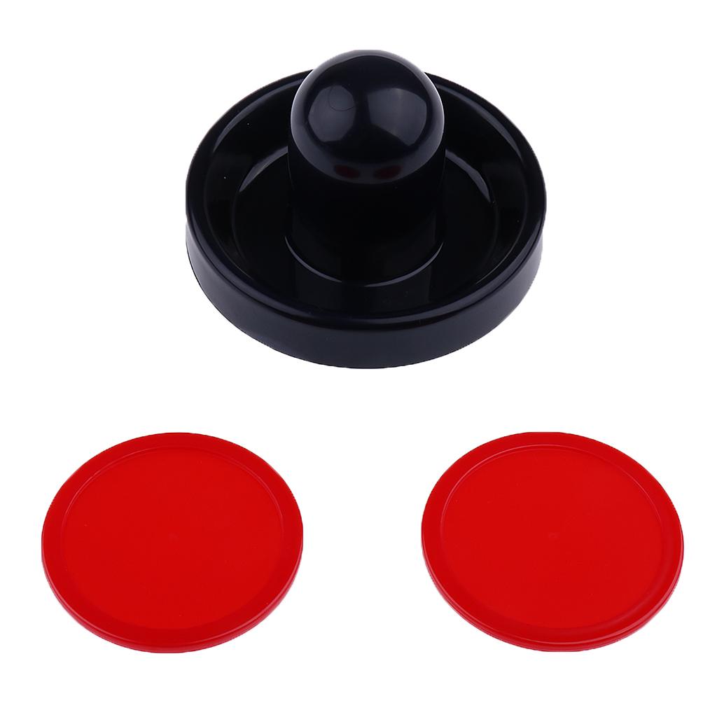 Great sets of two air hockey pushers and four pucks in three sizes (S,M,L) to choose