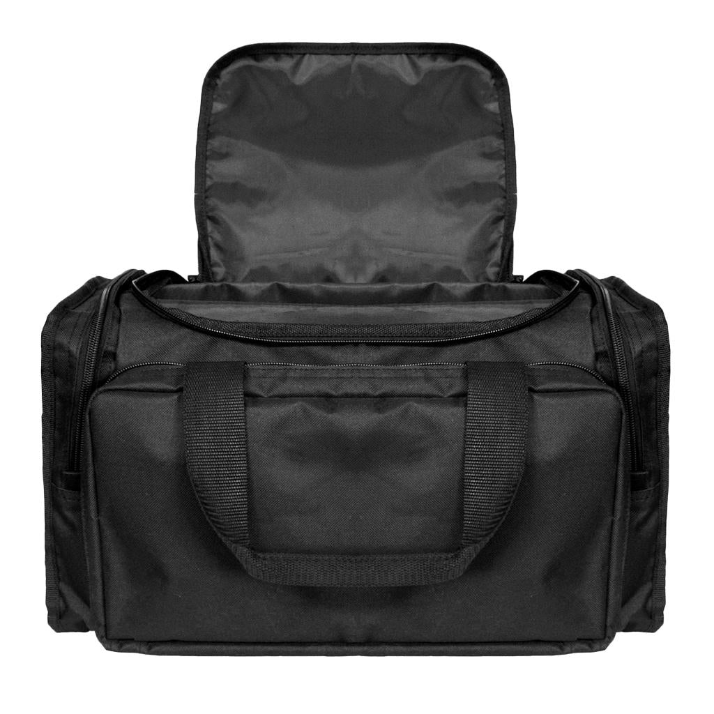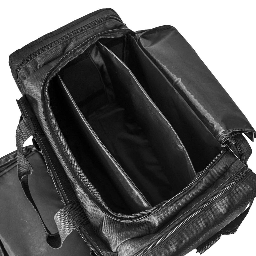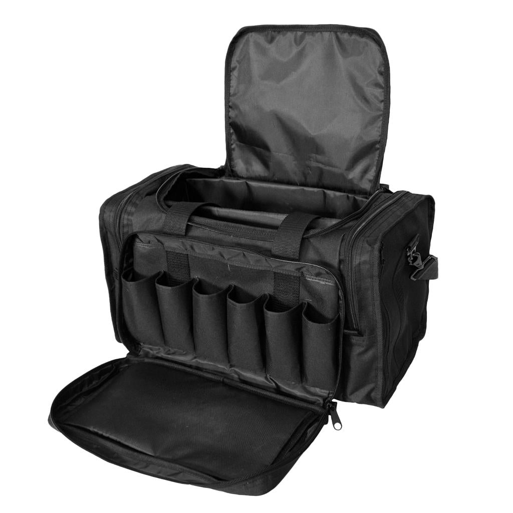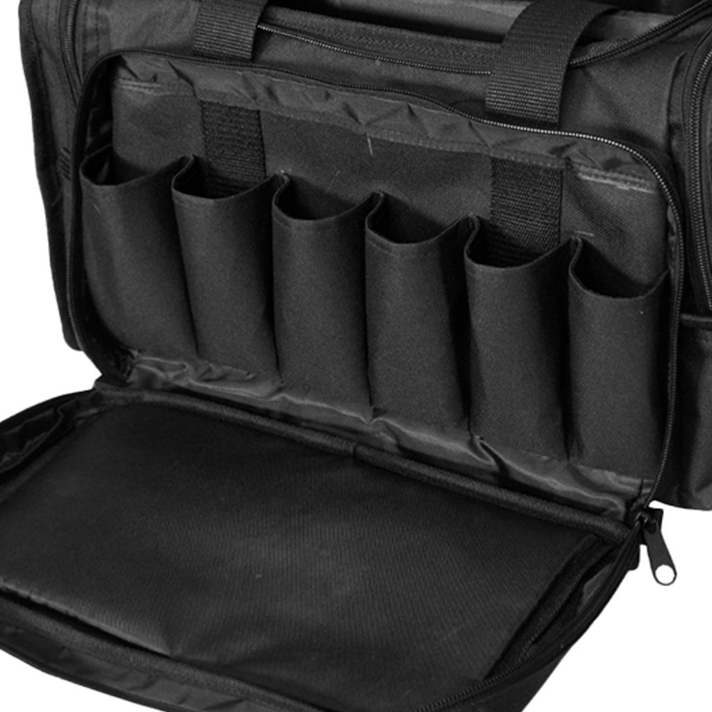 Shooting range bag has padded multiple compartments to keep your earmuff, goggles, magazine, and accessory etc.