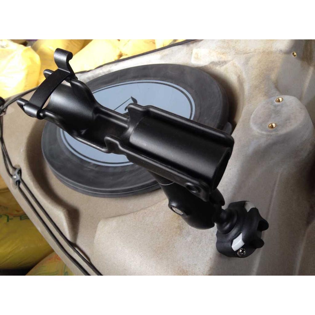 Can be mounted securely to a rail, side or flush to the gunnel of a boat / kayak