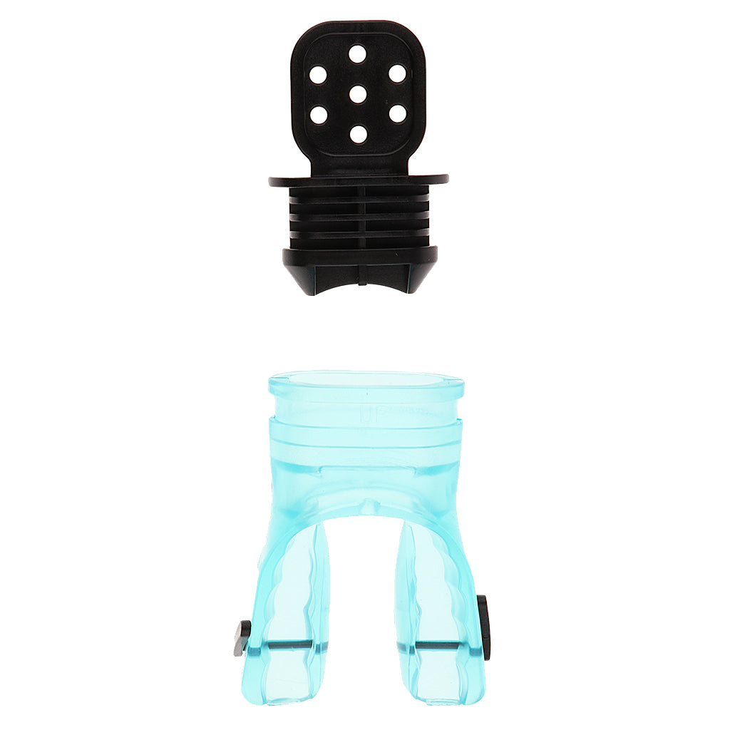 Regulator/snorkel can hang in your mouth without biting down the mouthpiece tabs
