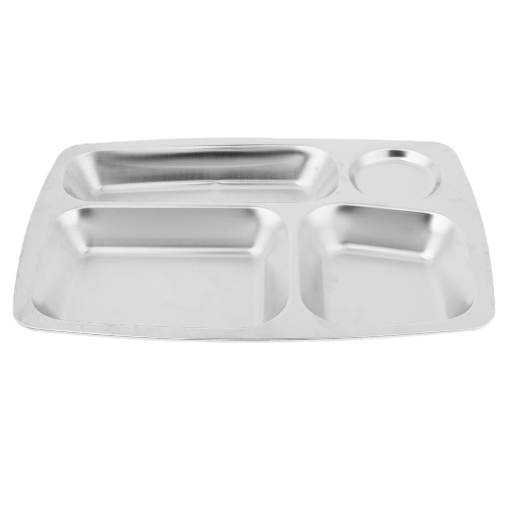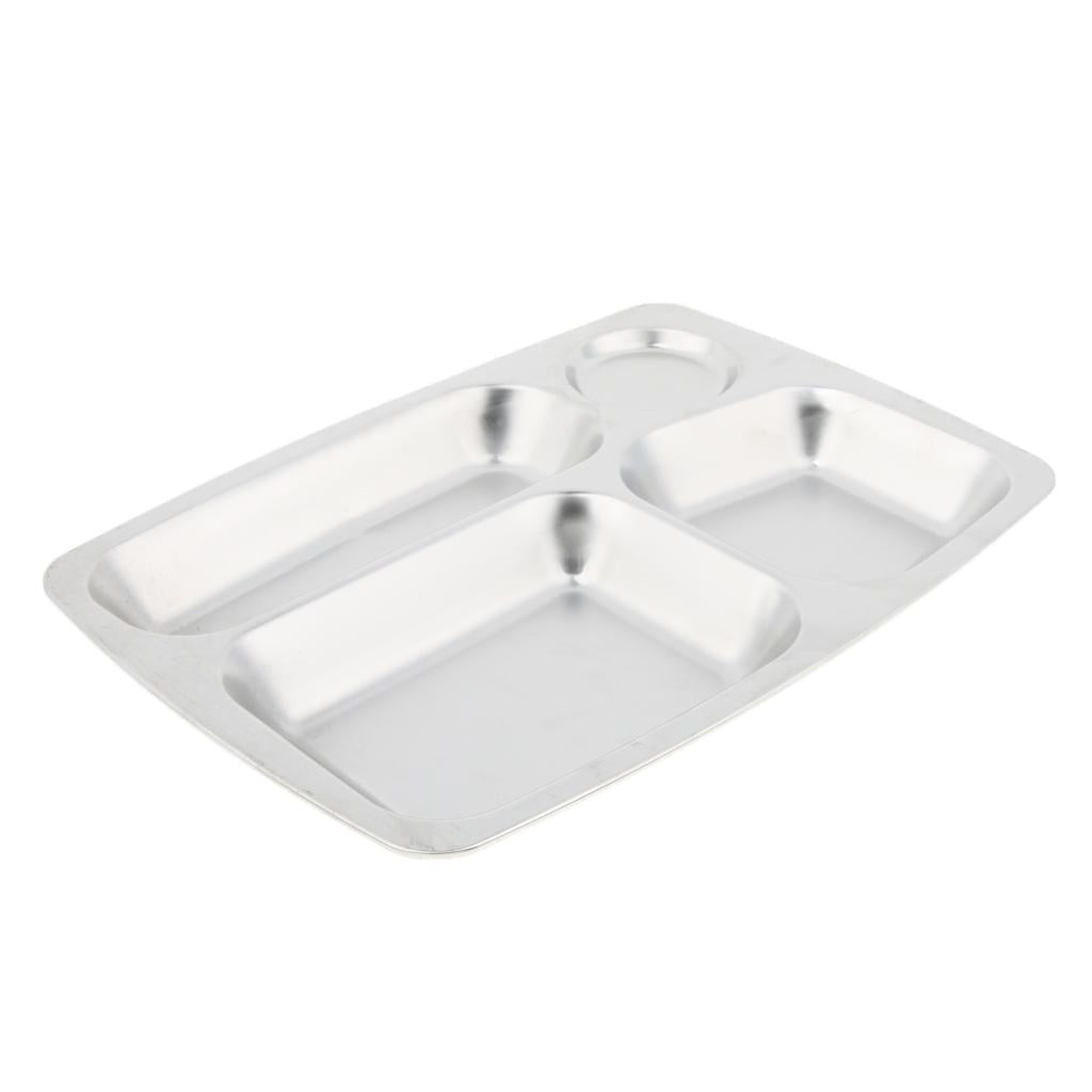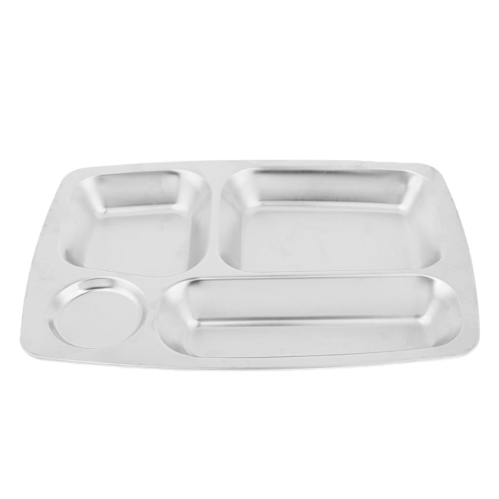 Stainless Steel Sectioned Food Serving Tray Canteen Divided Plate 29x21cm B