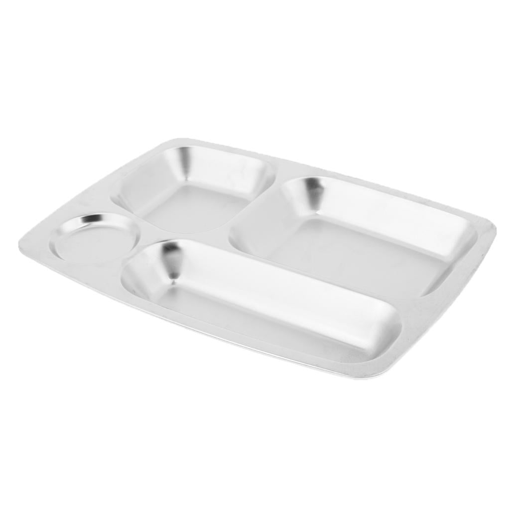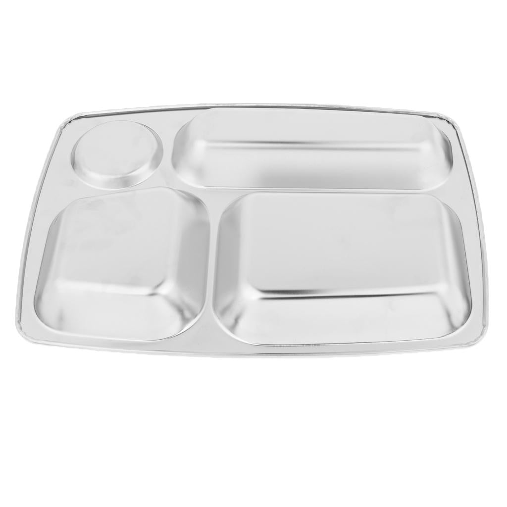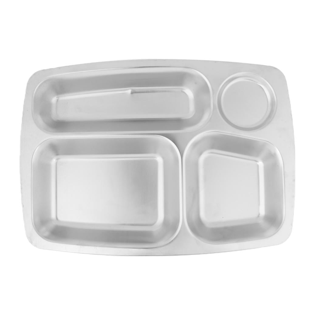 Stainless Steel Sectioned Food Serving Tray Canteen Divided Plate 29x21cm B