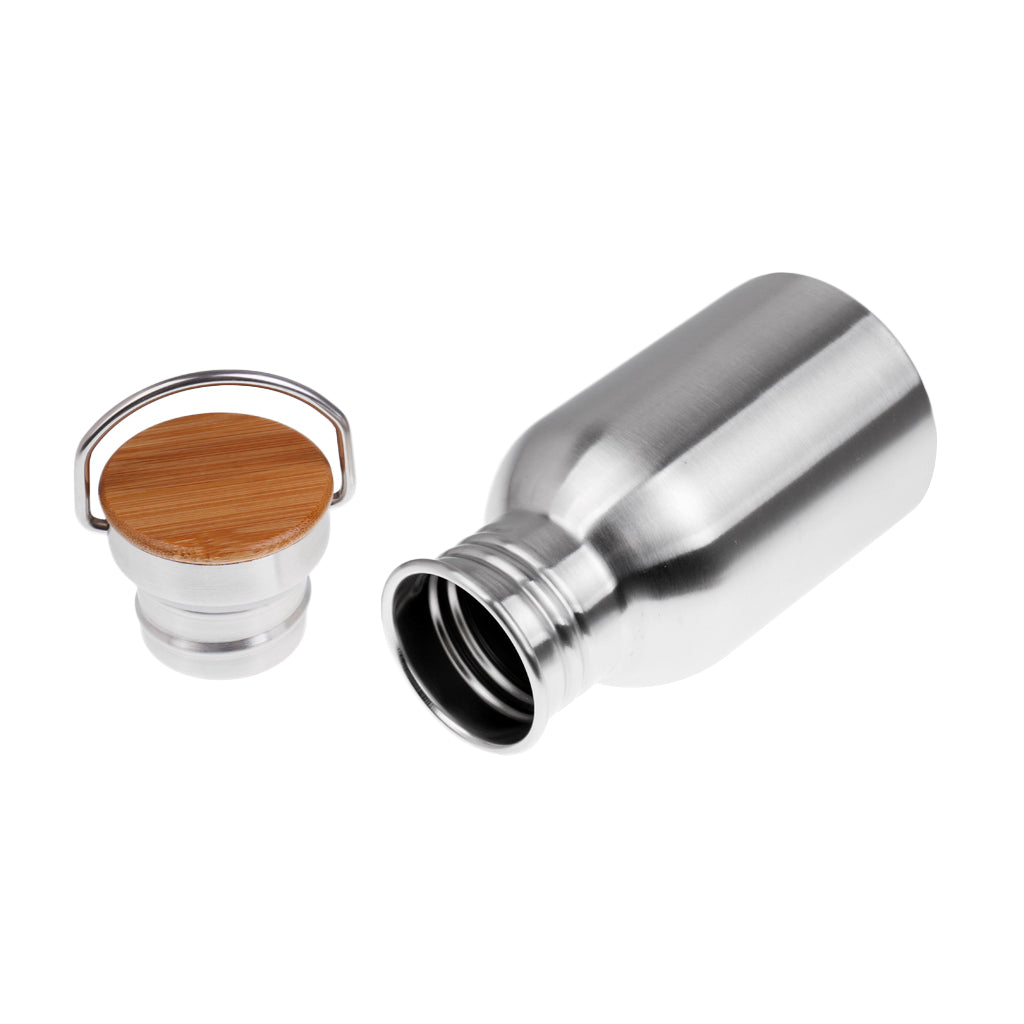 The stainless unibody bamboo cap comes with silicone inner ring provides leak-free seal.