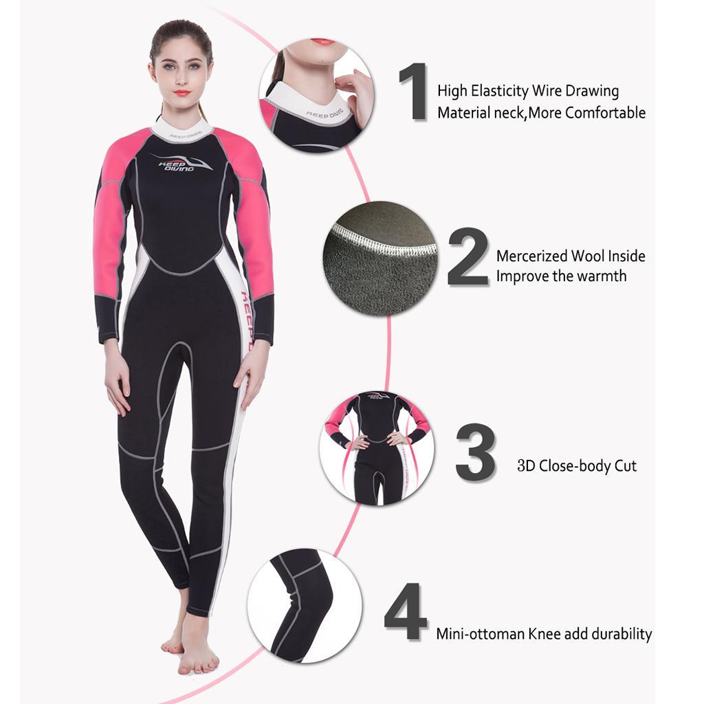 Women 3mm full body dive wetsuit - elastic, warm and comfortable