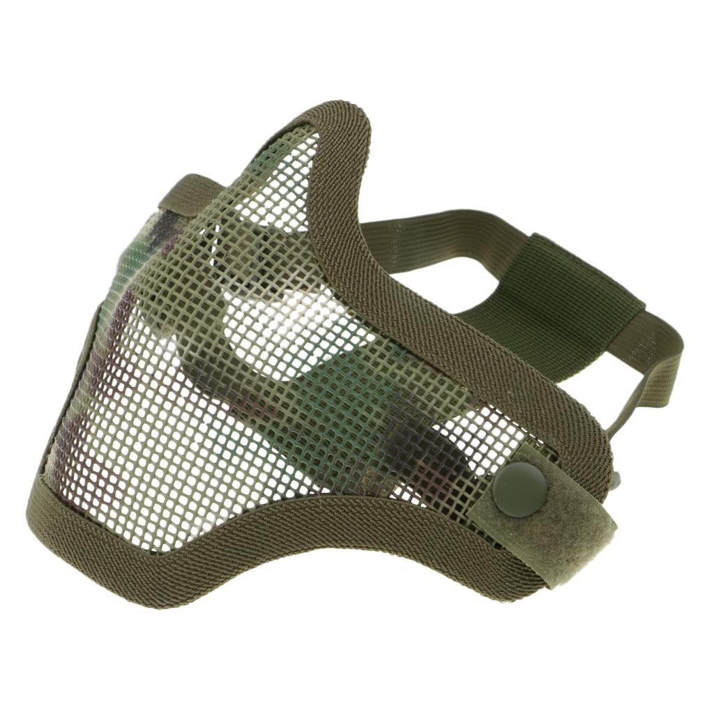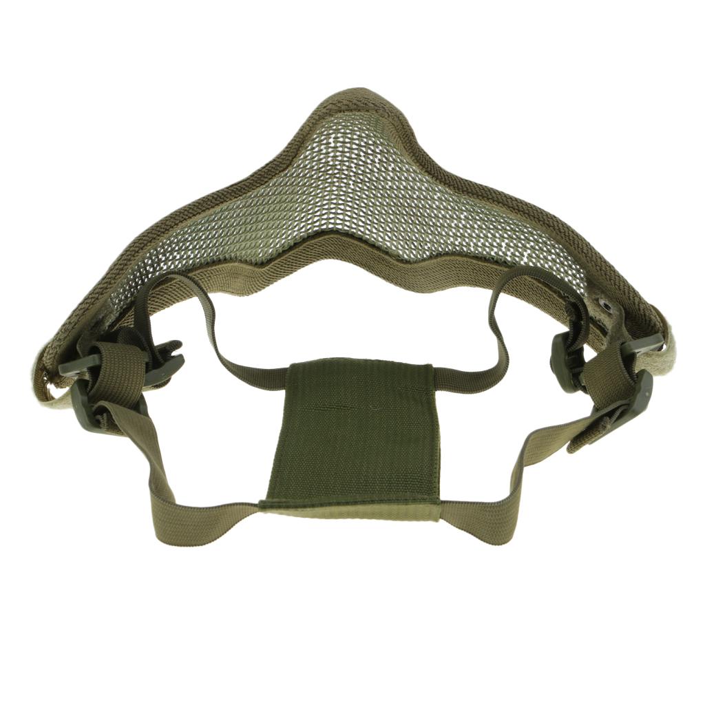 Tactical Hunting Adjustable Steel Half Face Mesh Mask Army Green 02