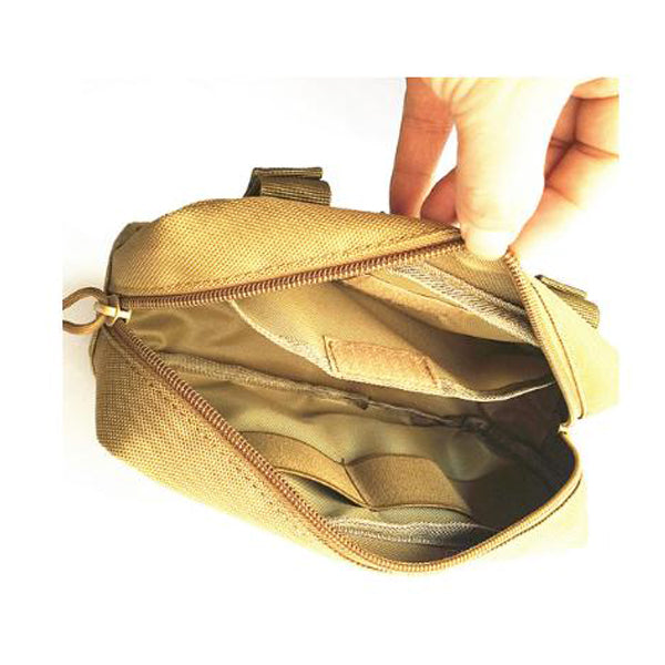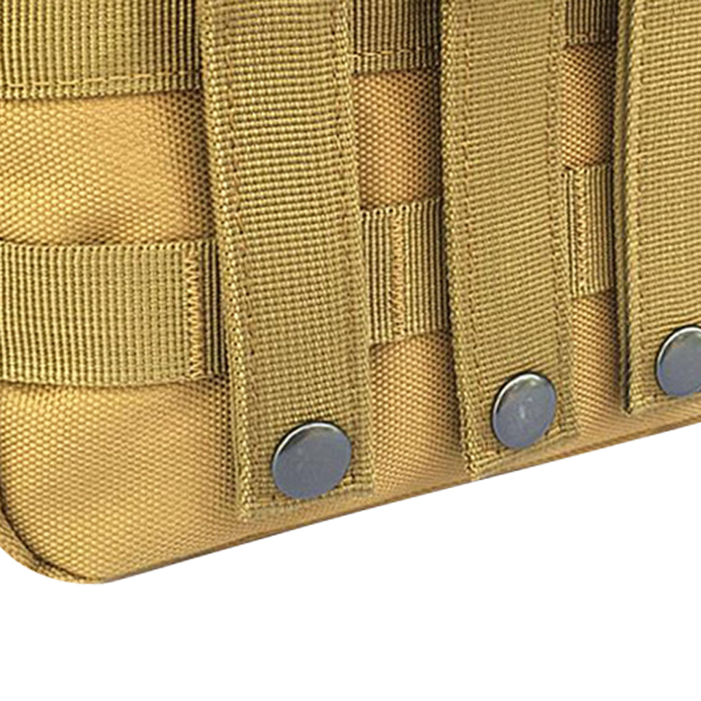 The Molle attachments with buckle straps allow you to secure it to belt, vest, backpack etc.