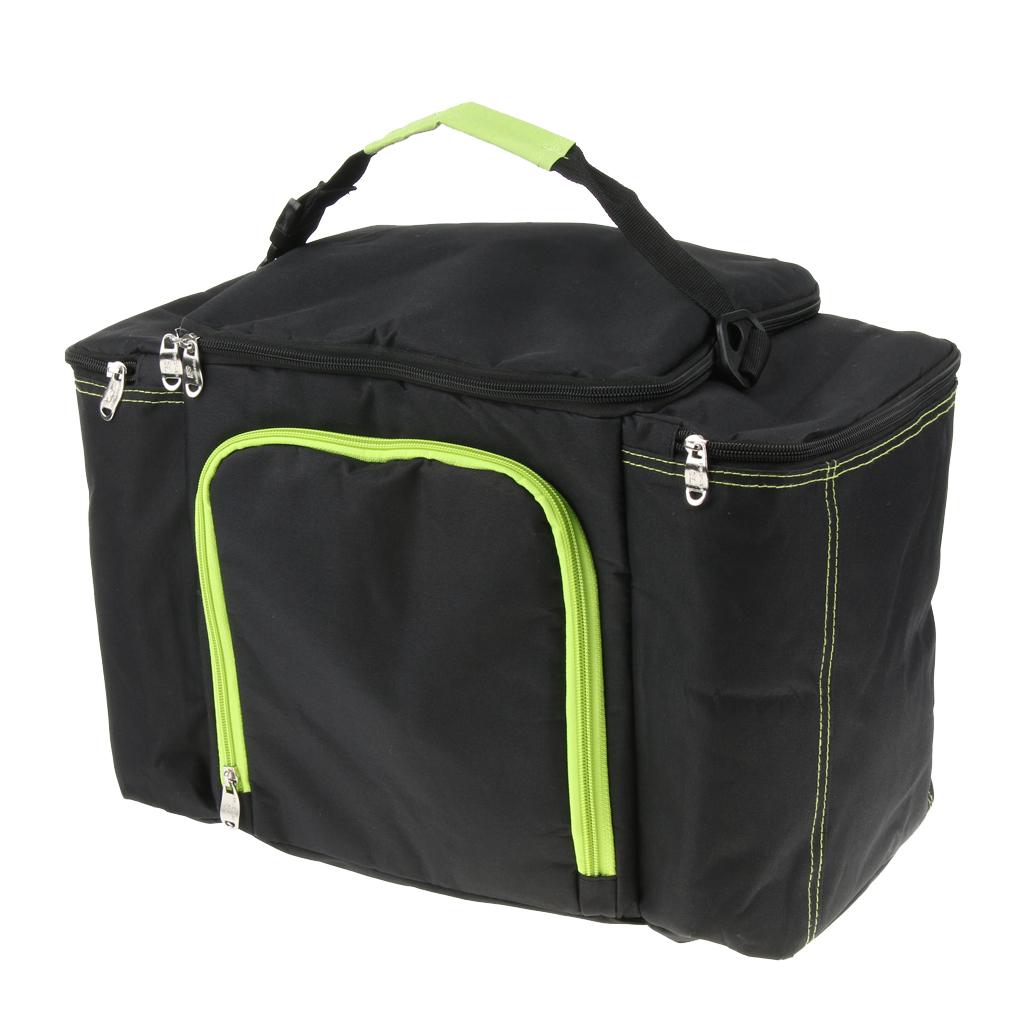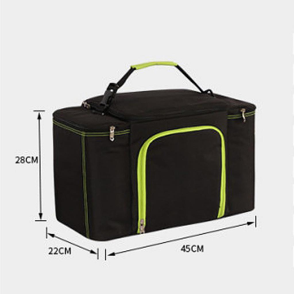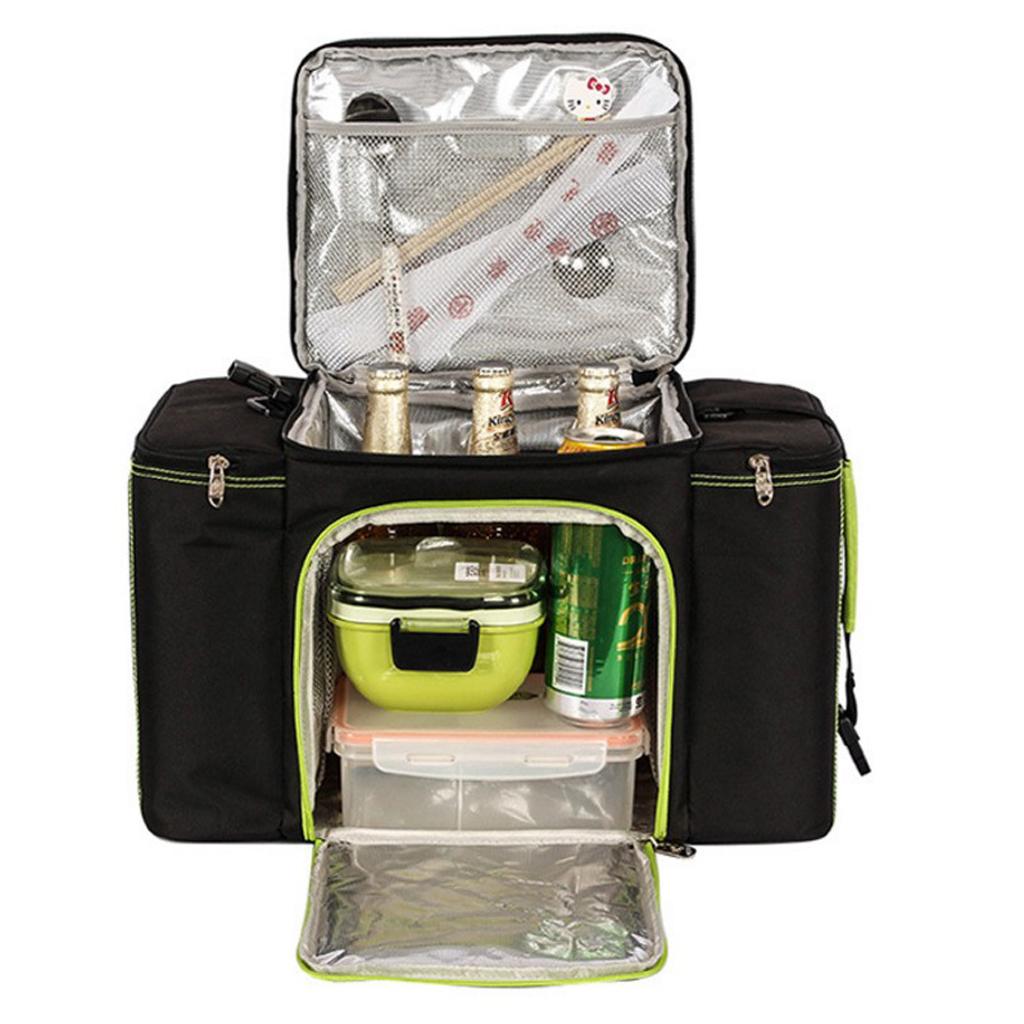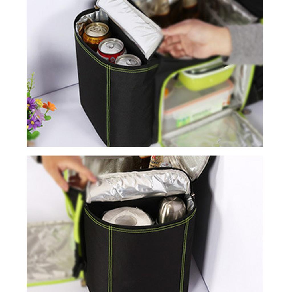Large capacity and spacious cooler, 27L can be used to hold drinks, beers, lunch, dinner, snacks, vegetables, fruits, milk, etc. keep your food cold, hot, fresh, and other two compartments can be used to store pepper box, cooking utensils, travel accessories, and other items