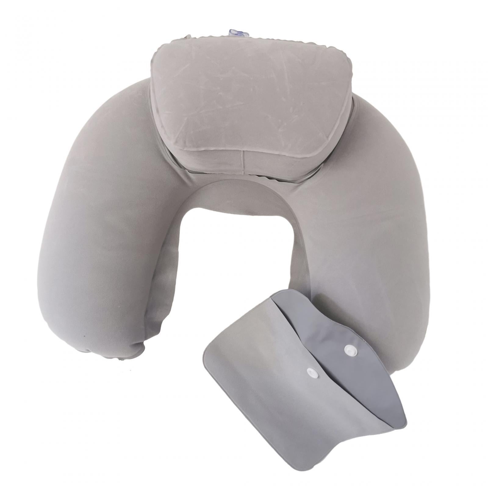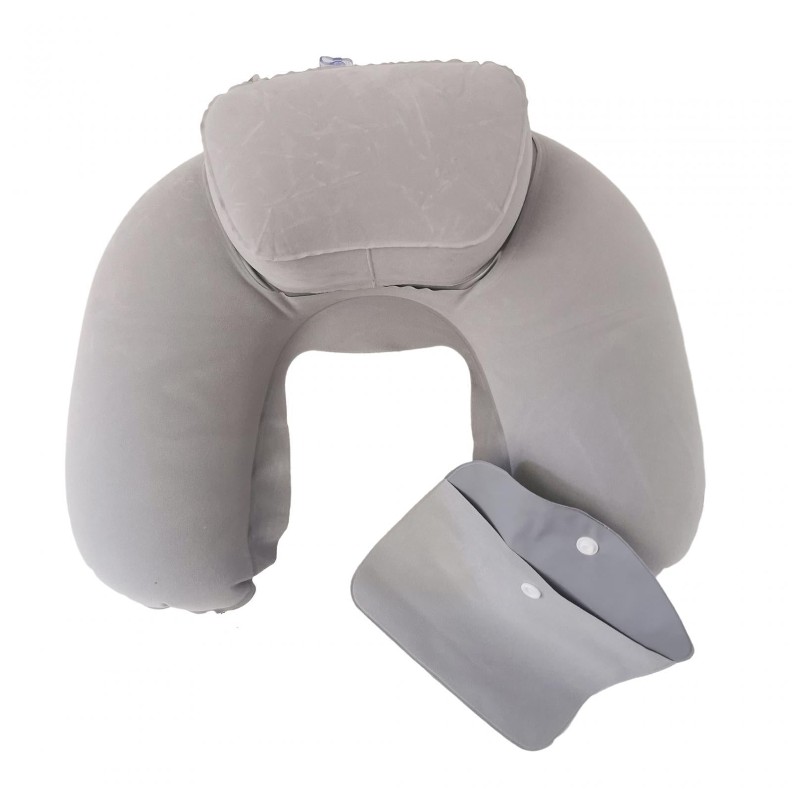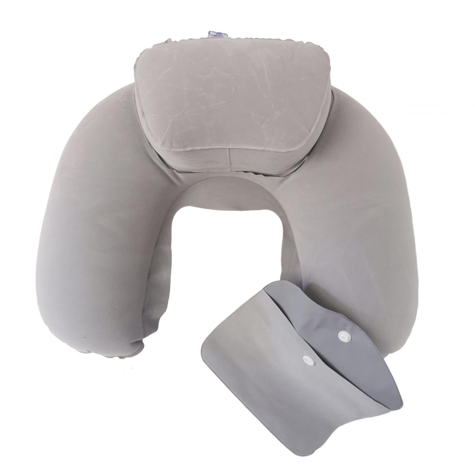 Travel Plane Inflatable U Shape Pillow Neck Head Rest Air Soft Cushion gray