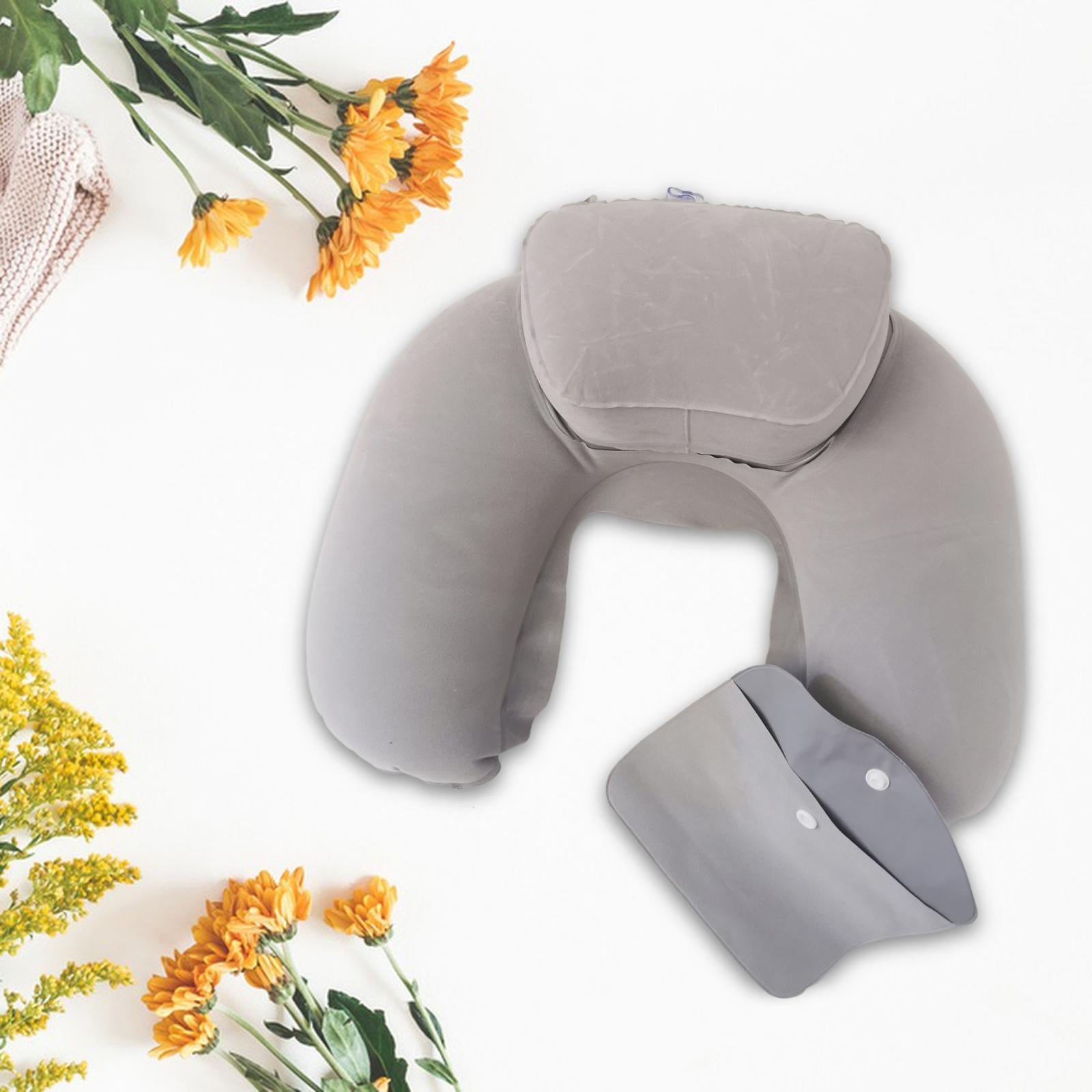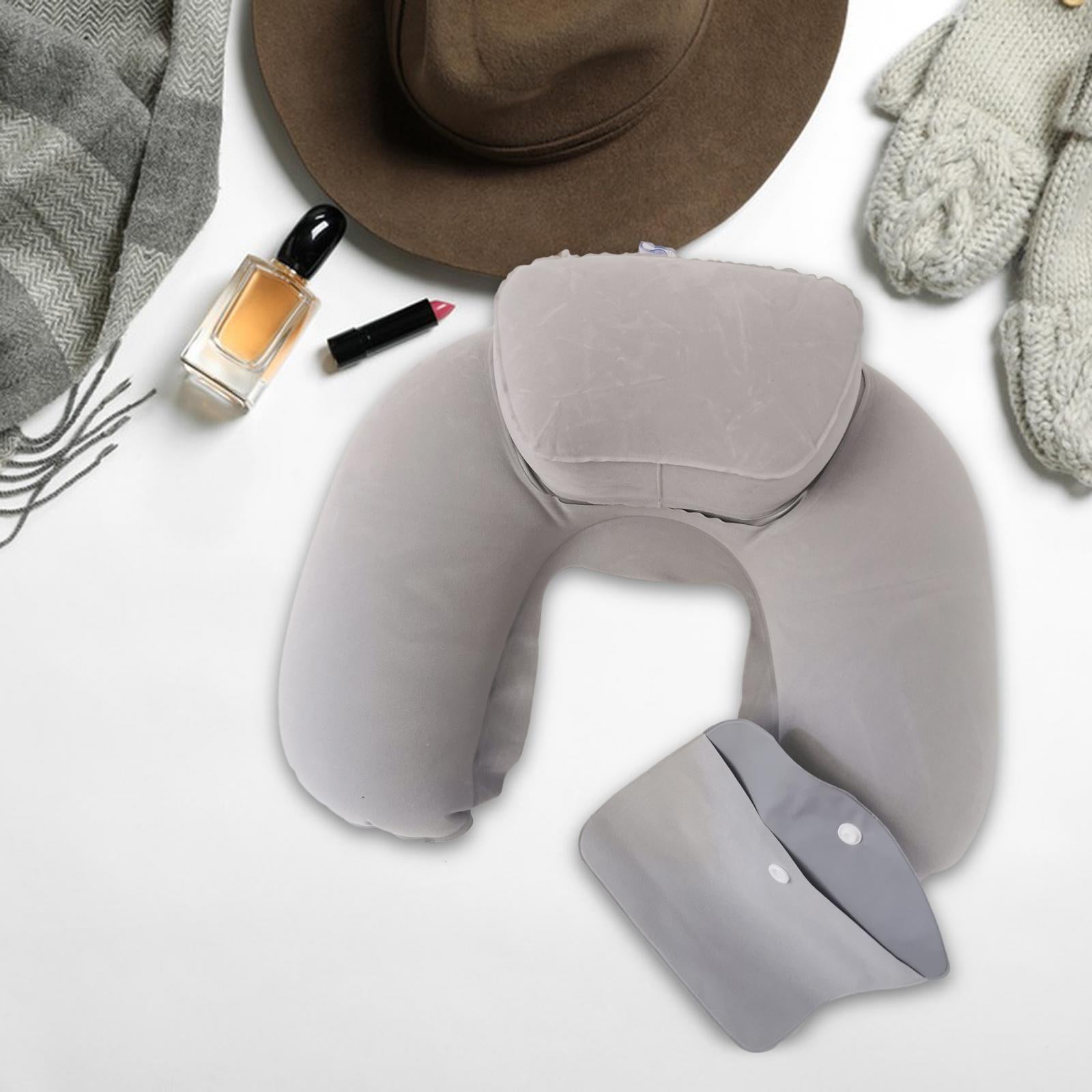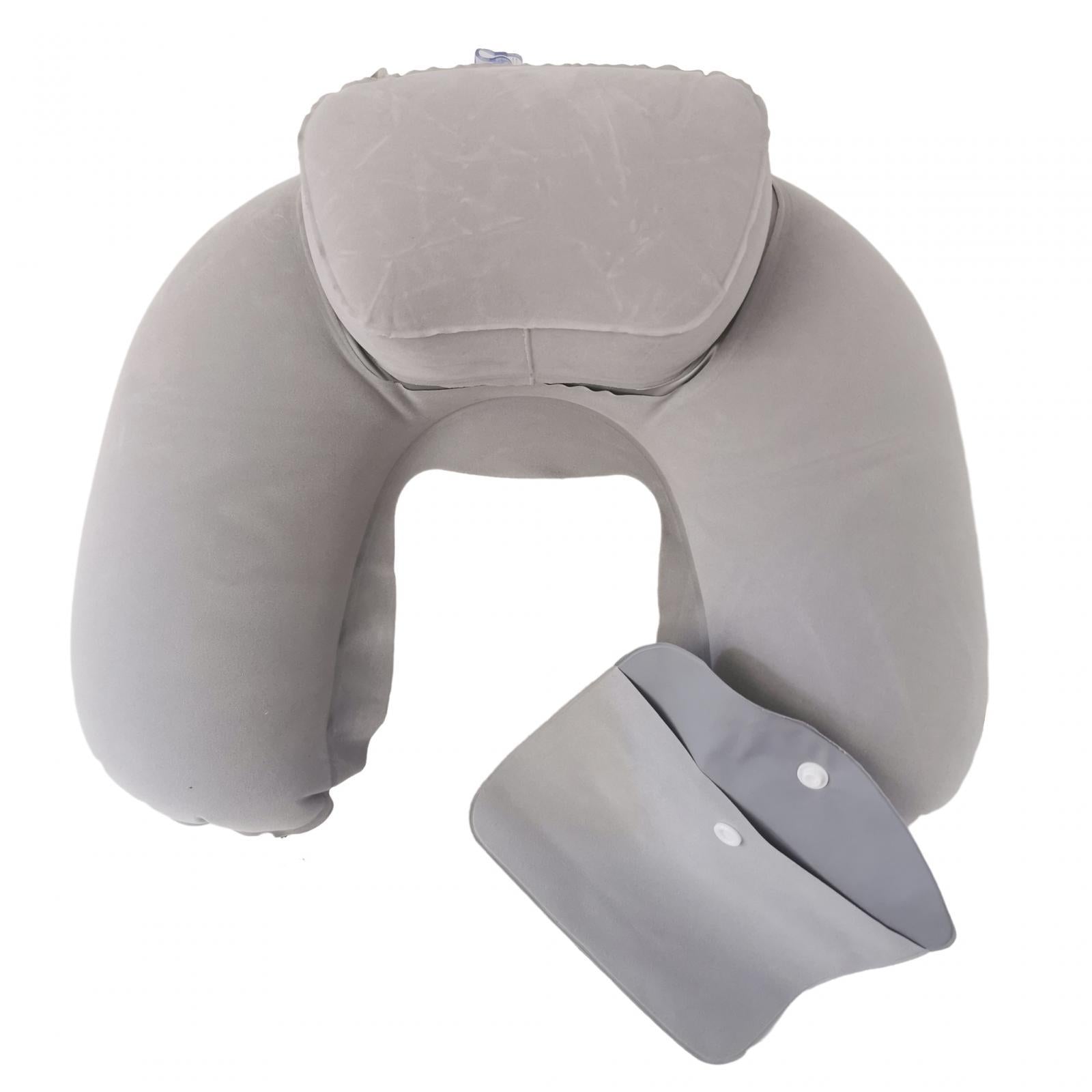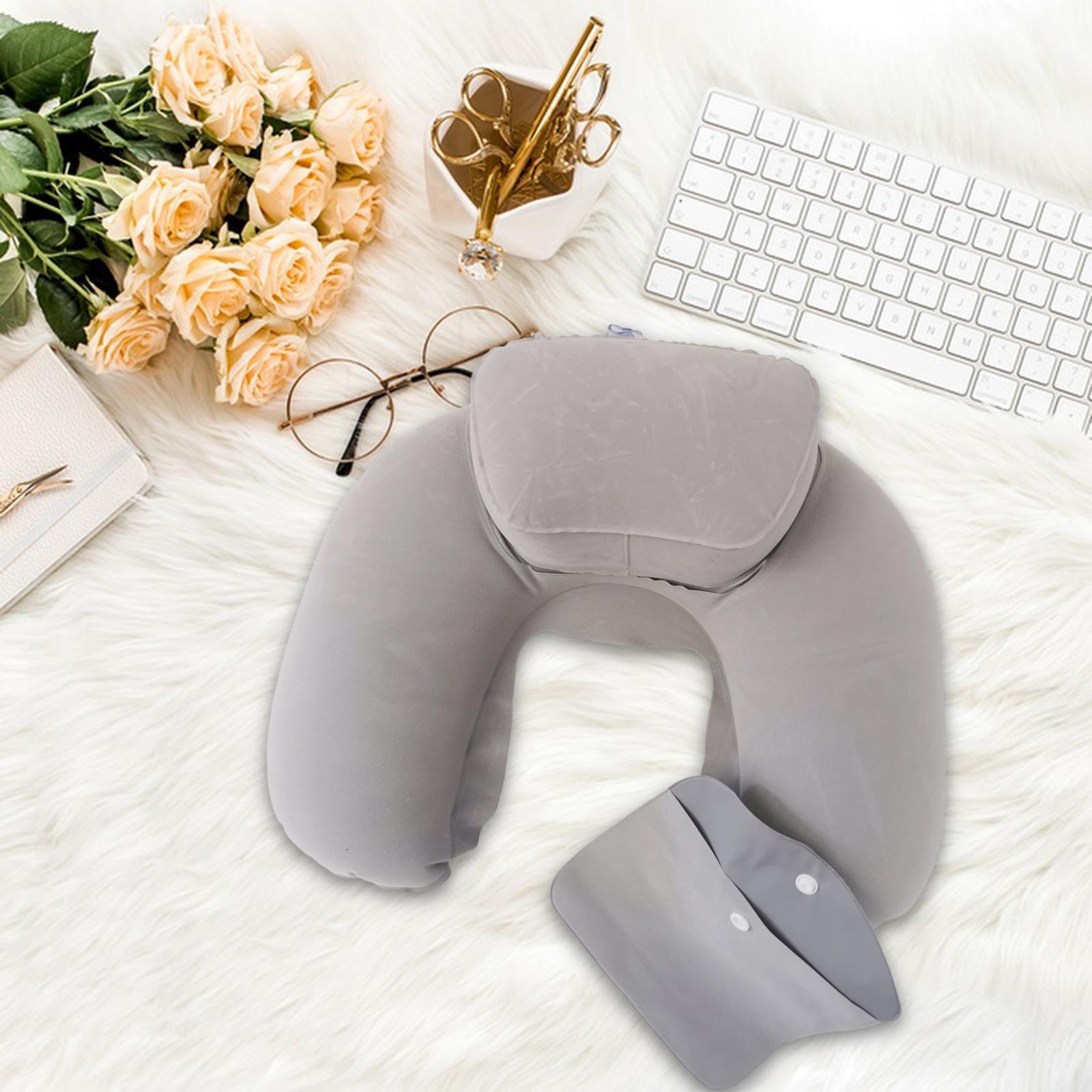Travel Plane Inflatable U Shape Pillow Neck Head Rest Air Soft Cushion gray