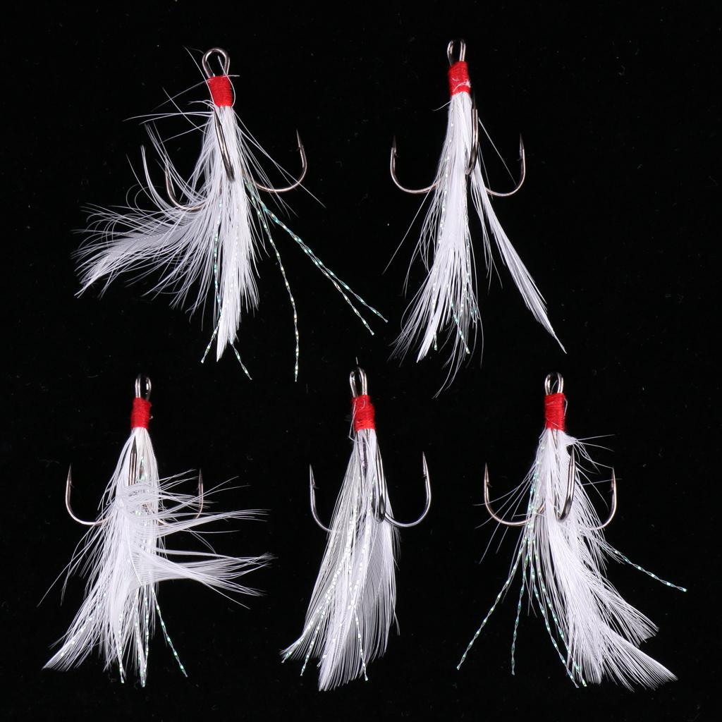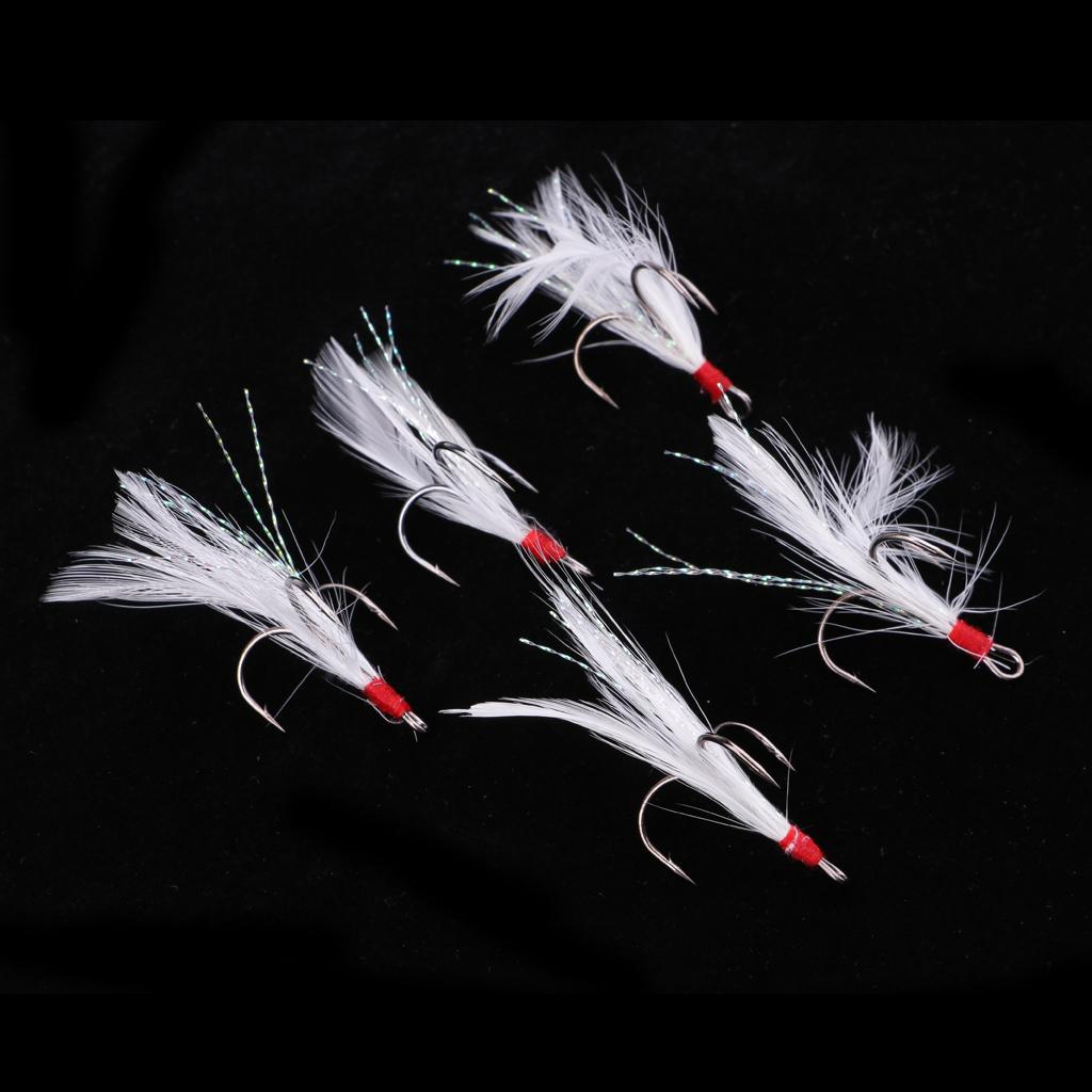 Treble With Feather Hook Sharp Fishing Bait White Carbon Steel Fishhook 1#