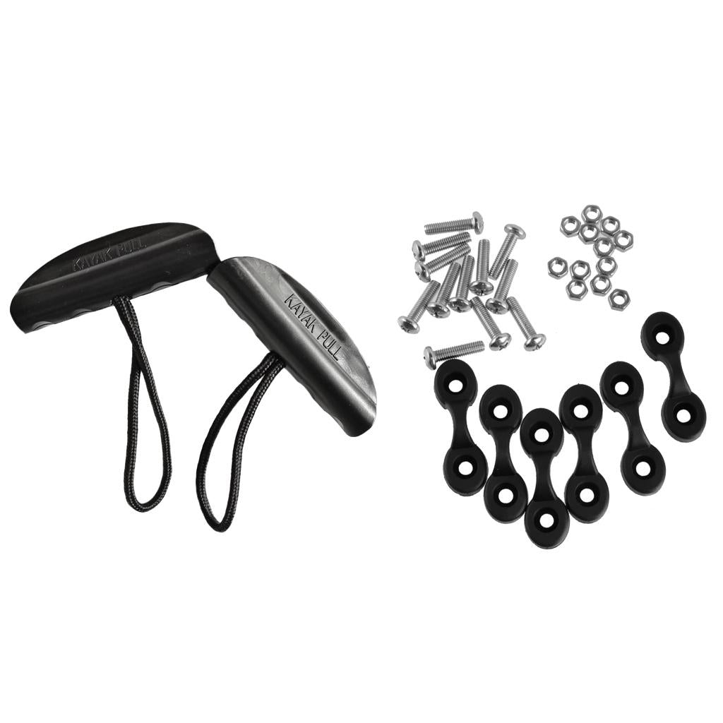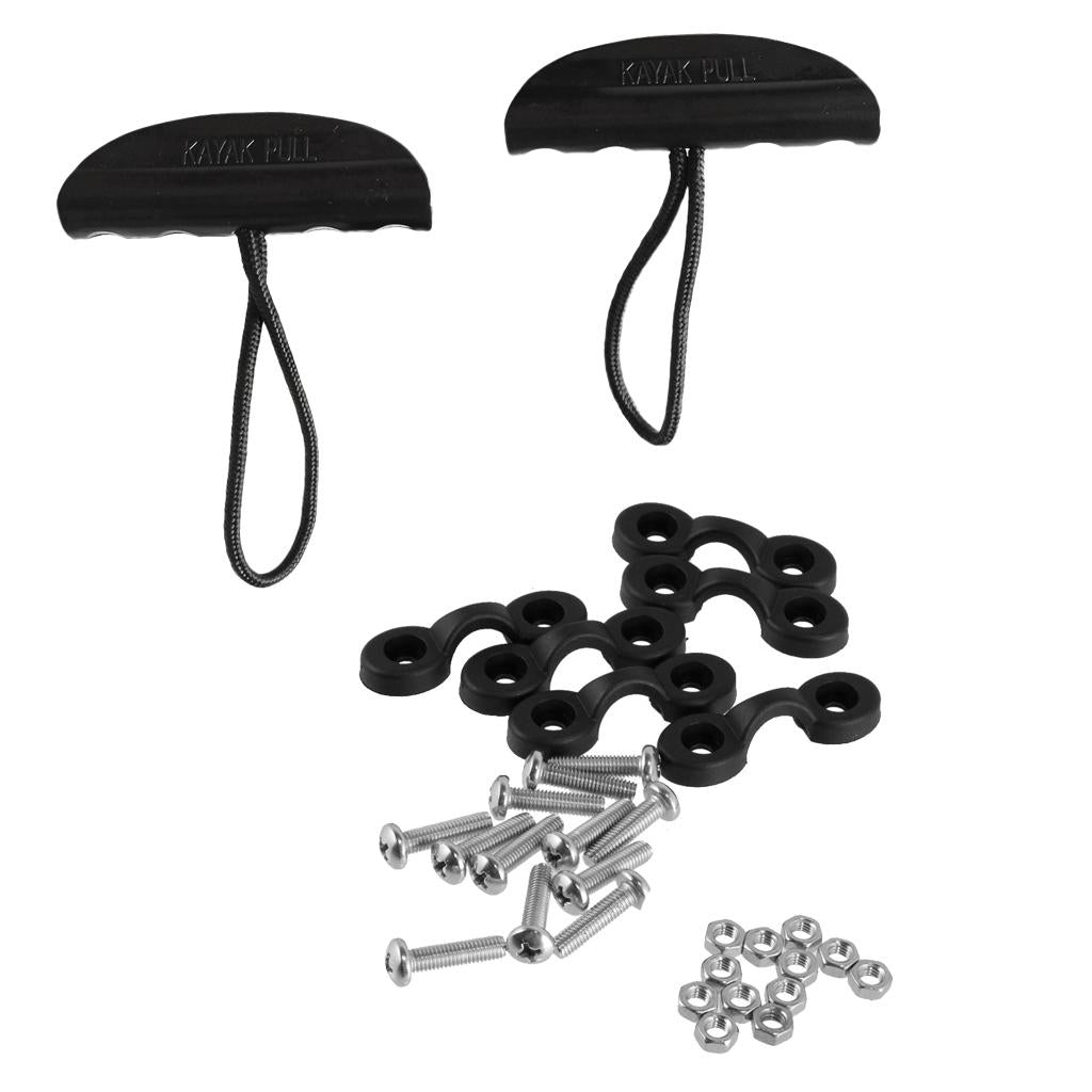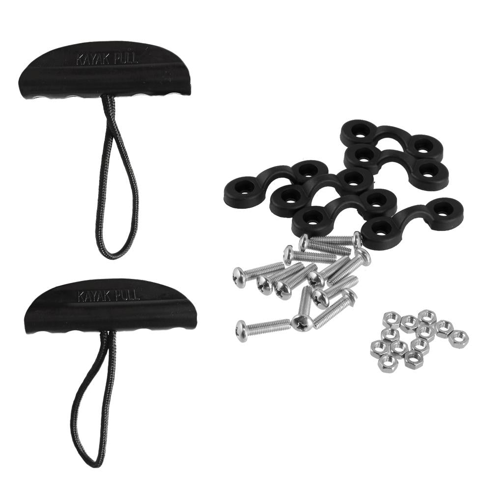 Universal kayak accessories, including 2 pieces kayak pull handle with 6 pieces pad eyes and 12 pieces stainless steel screws nuts hardware