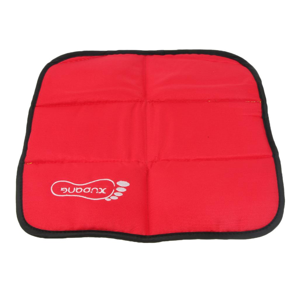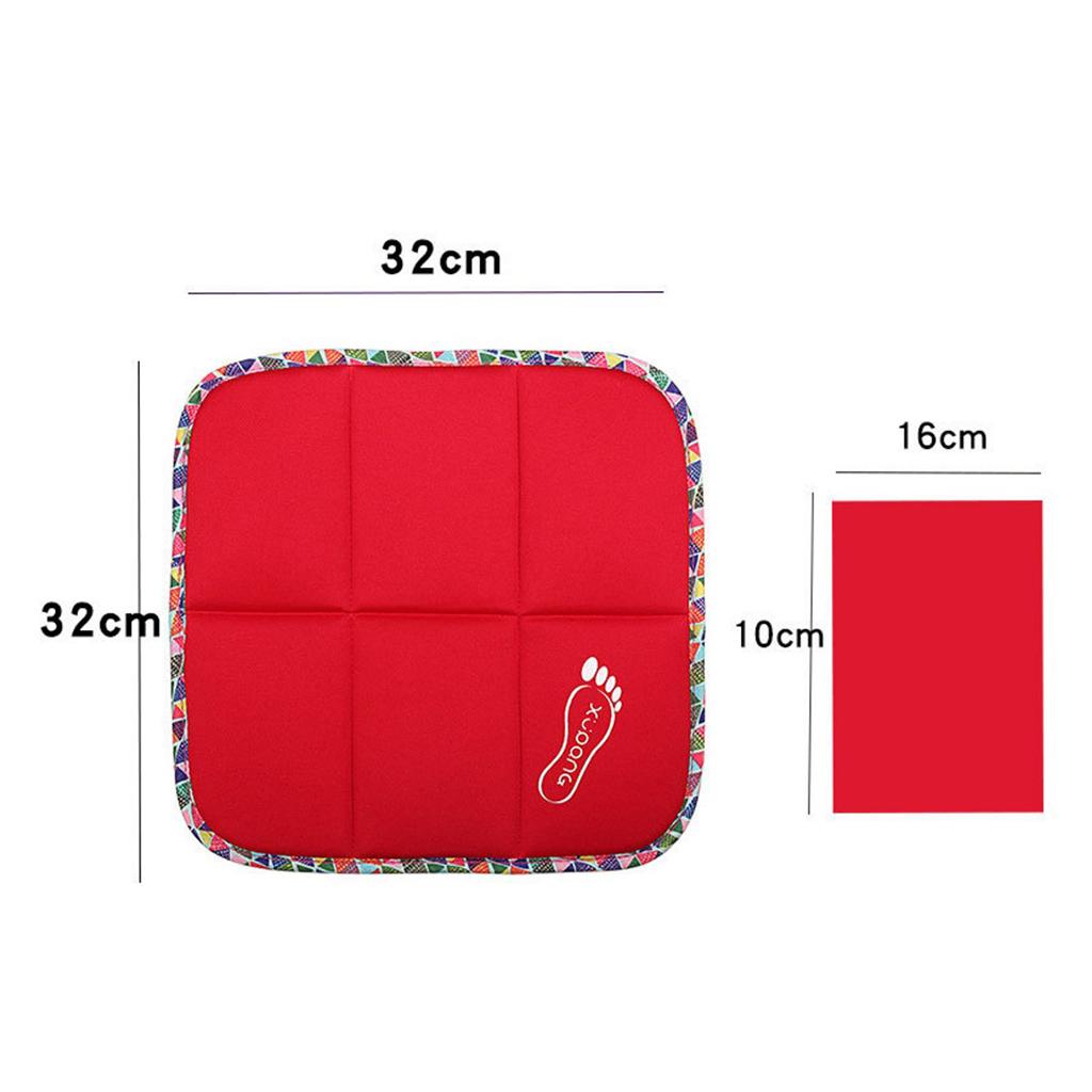 Sponge padded, comfortable to sit on, 32x32cm when unfolded, square shape, suitable thickness padding for one adult or one kid, and 16x10cm folded size, lightweight, portable