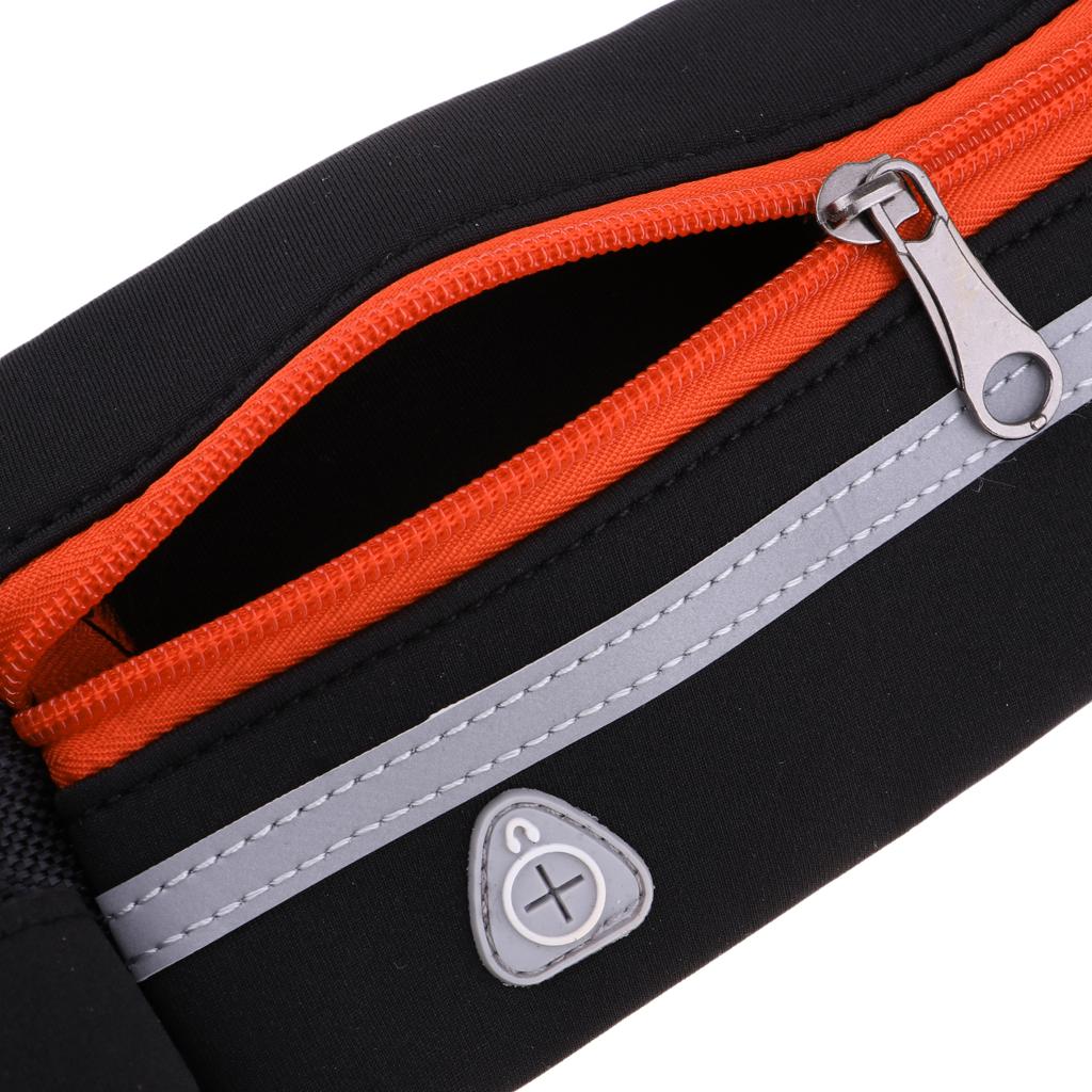 With 1 main zipper pocket for pedometer, phone, 1 small side pocket for keys, cards or coins, 1 side pocket for water bottle. Can hang a flashlight