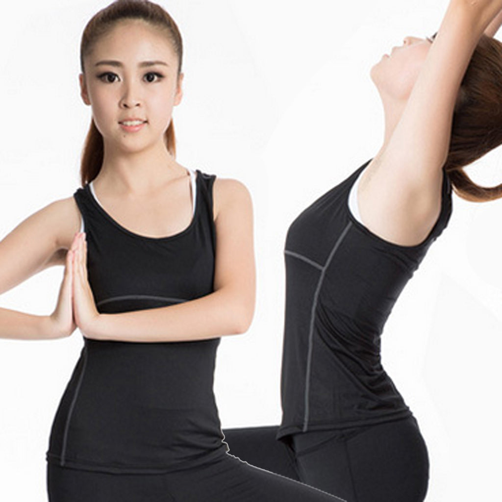 Women Sports Vest Yoga Fitness Running T-Shirt Top Black S