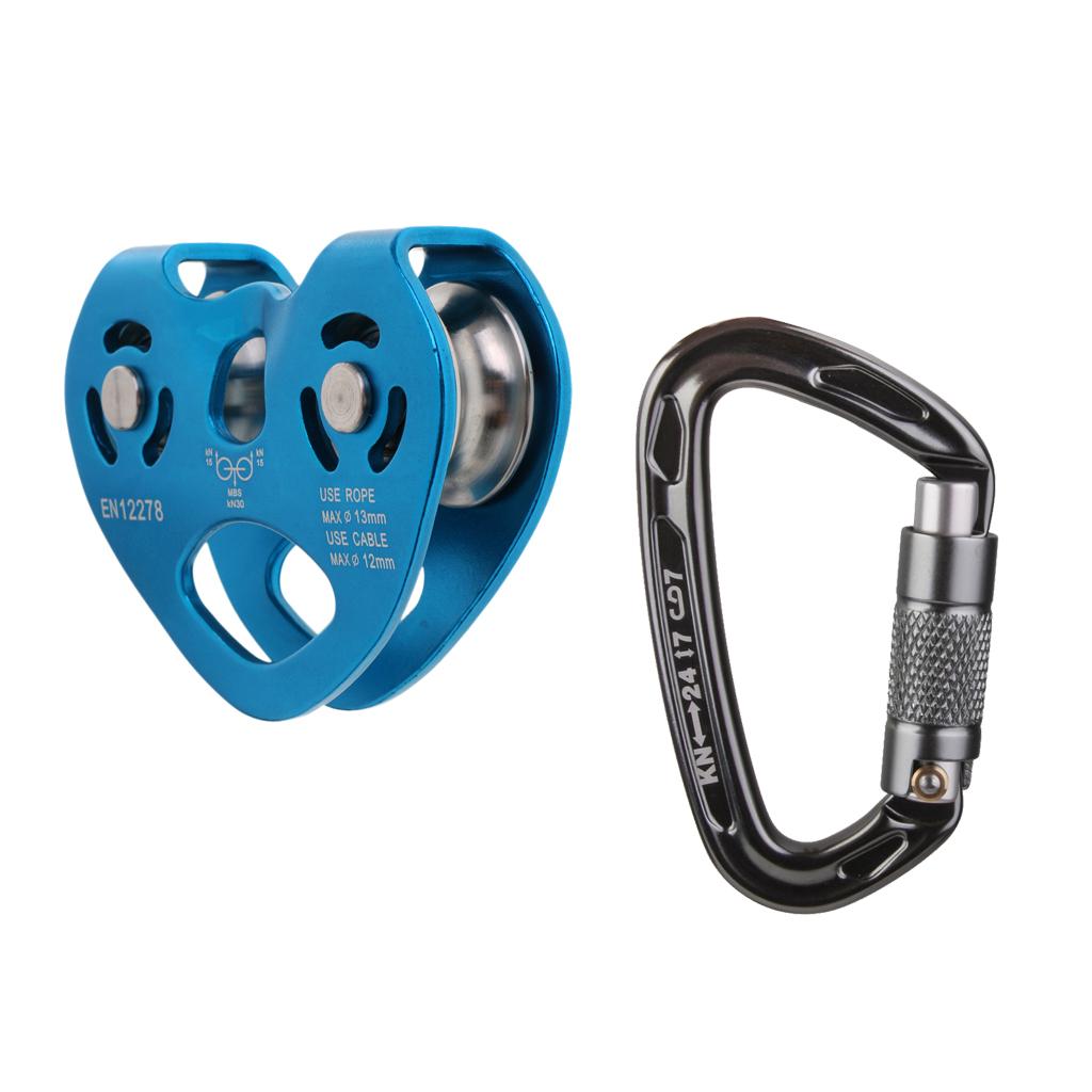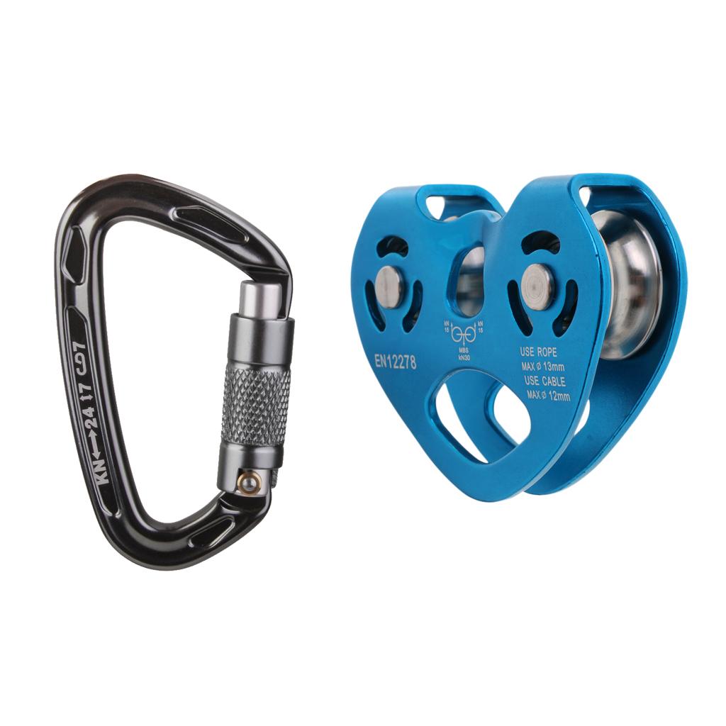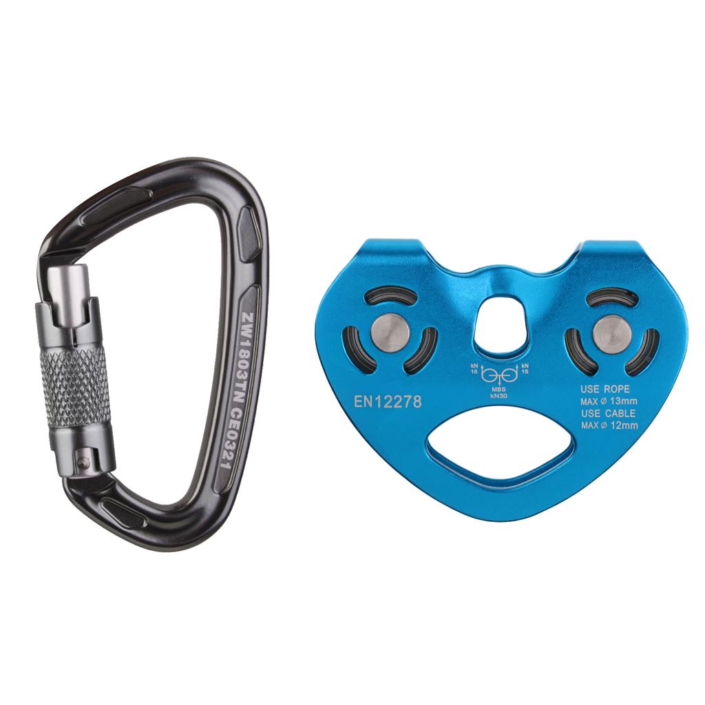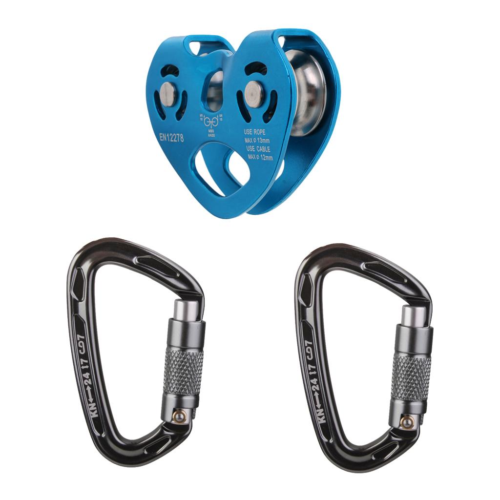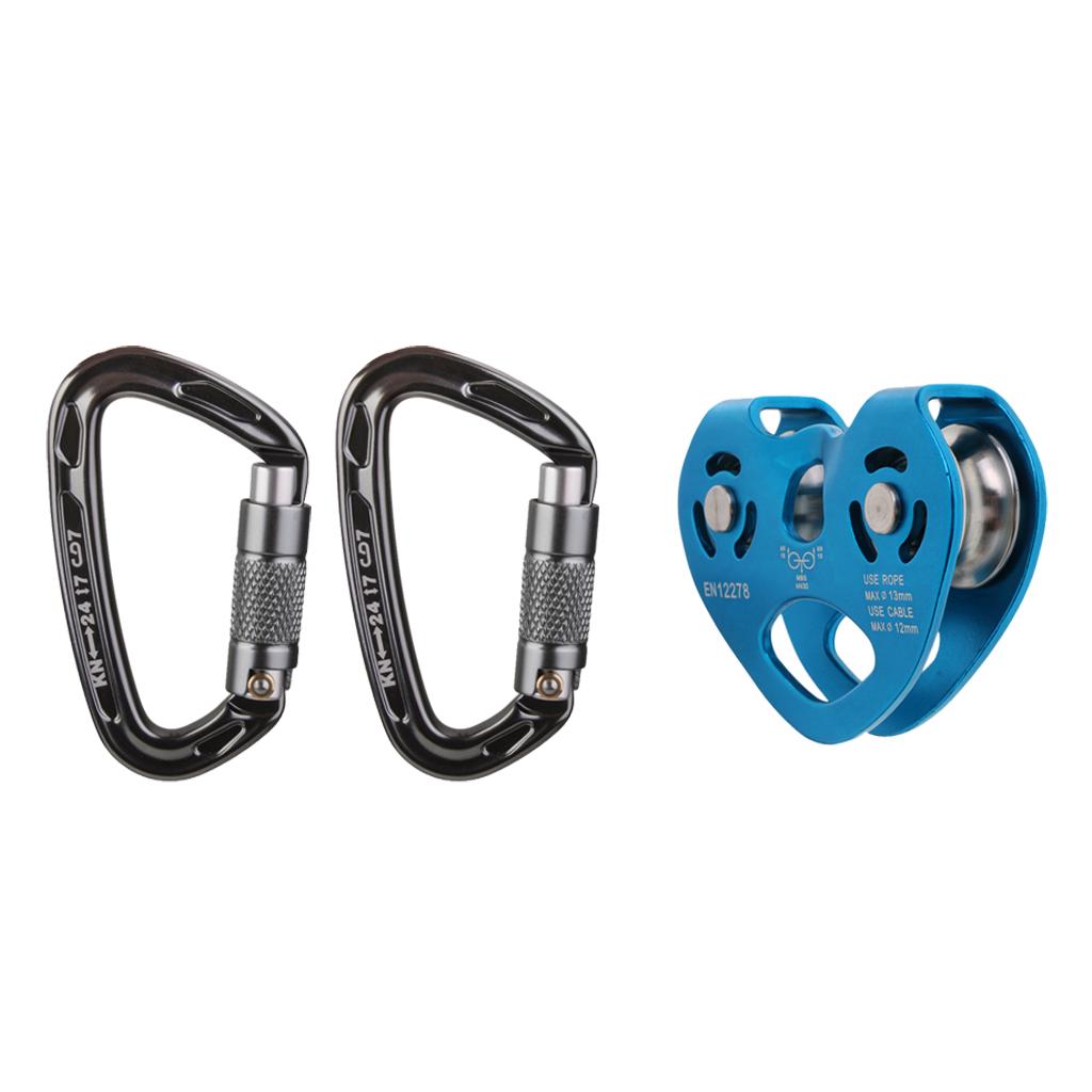 Zip line trolley pulley + 2Pcs D-Shape self-locking climbing carabiner, lightweight, durable and portable for carry