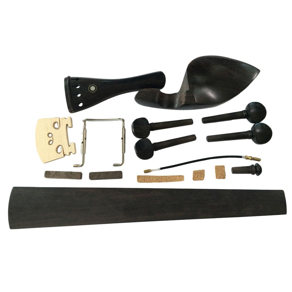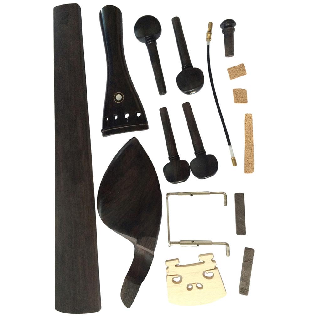 Chin Rest with Pegs Tailpiece Bridge Endpin Tail Gut Clamp Fingerboard Nut for 4/4 Violin 9 in 1