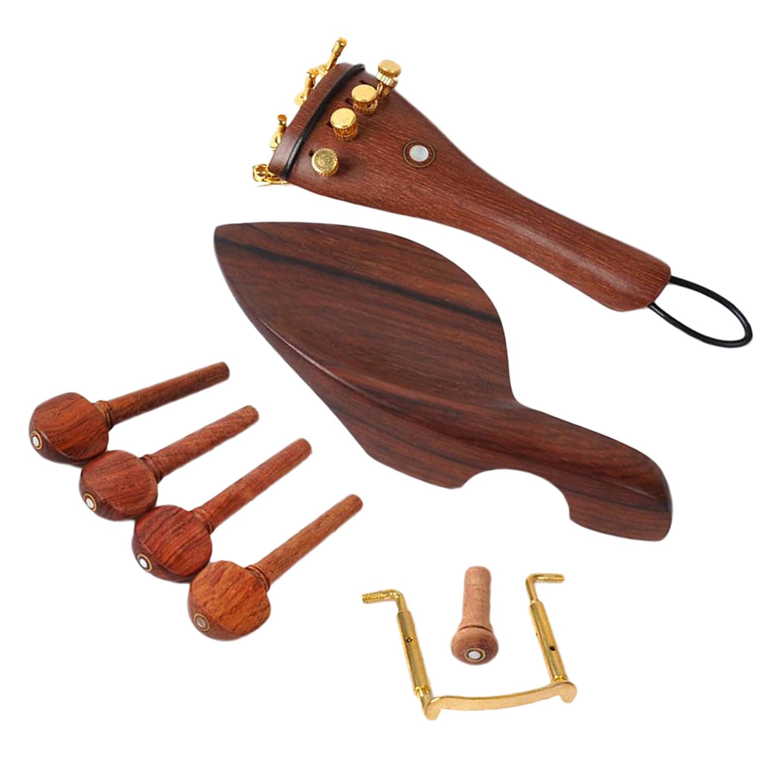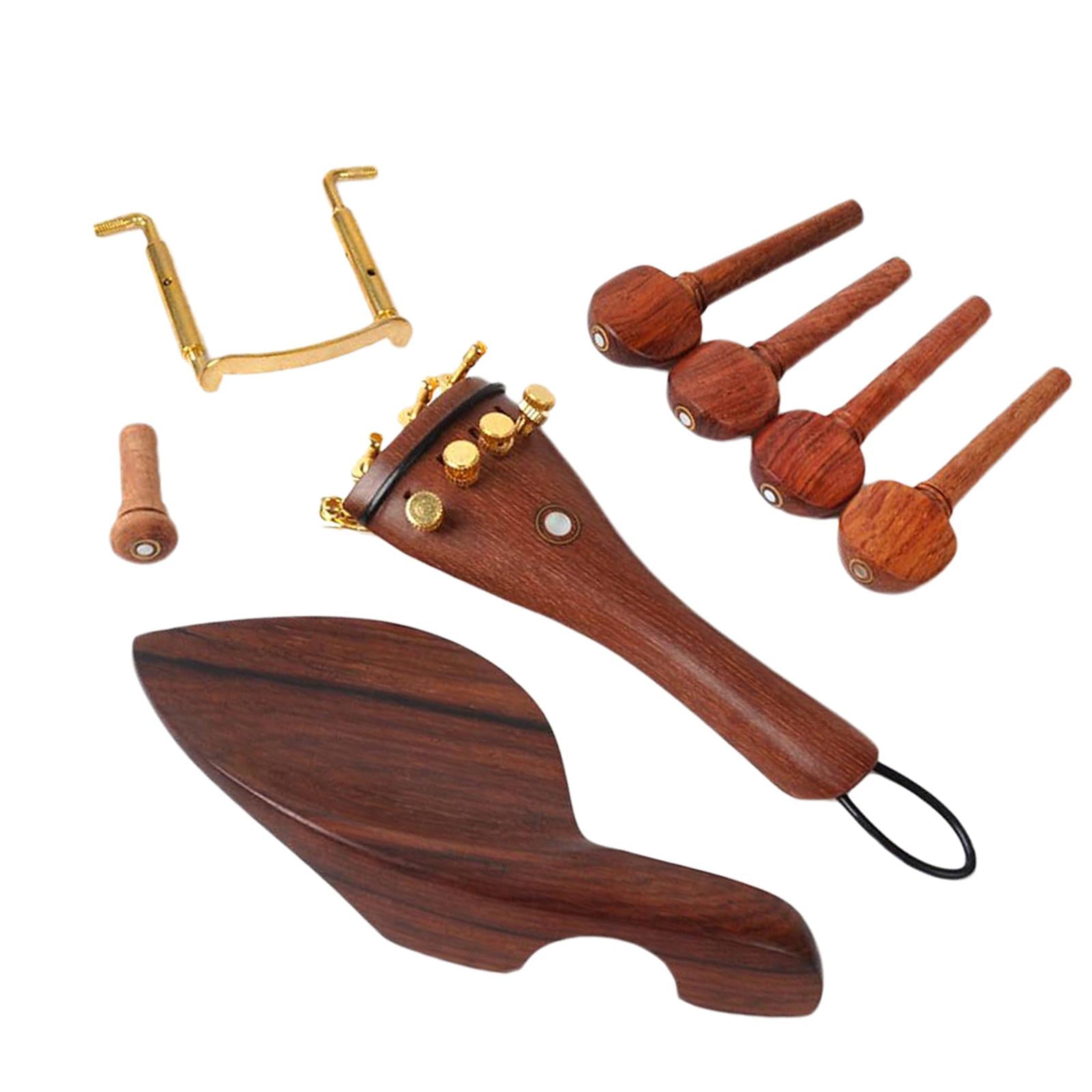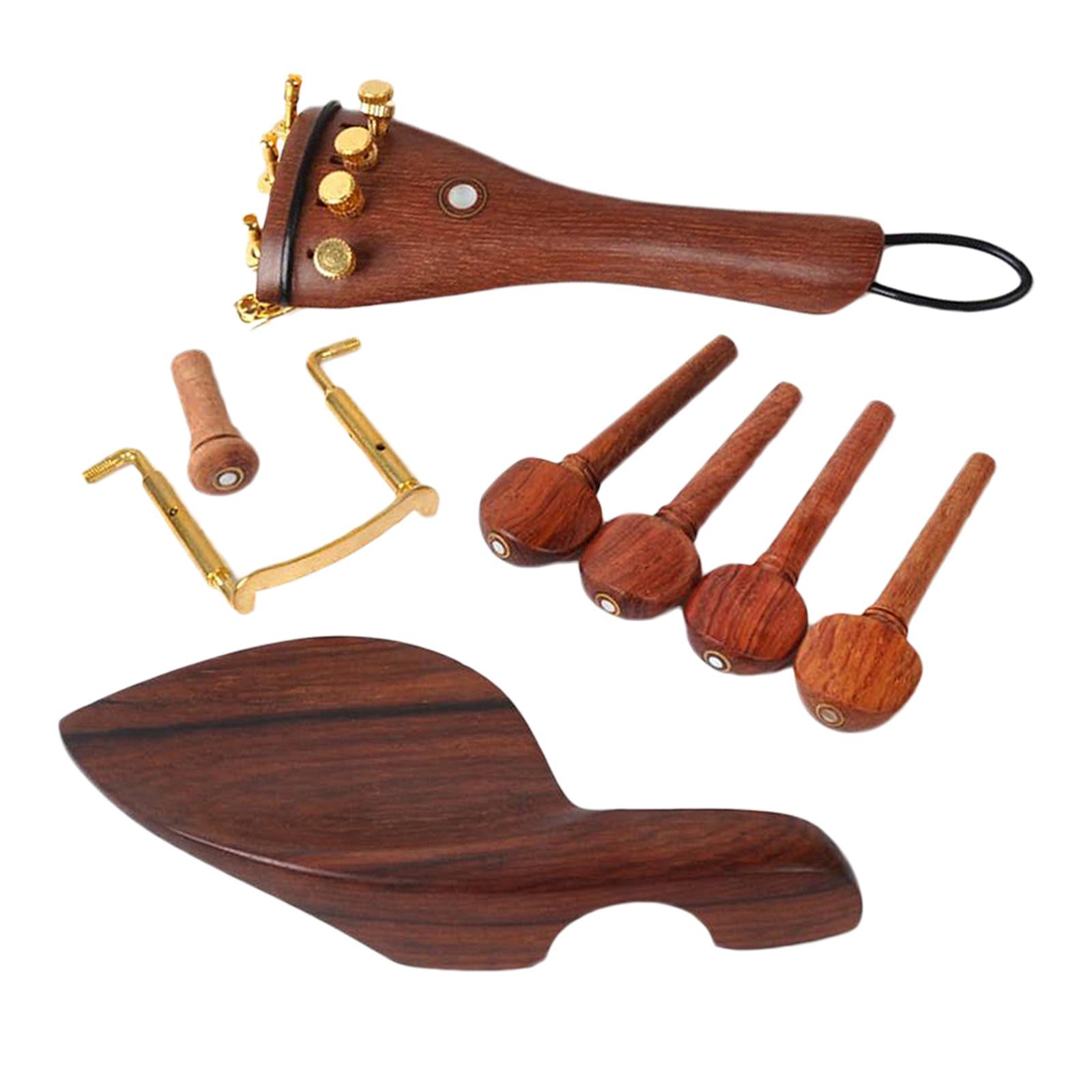 Set of Rosewood 4/4 Violin Parts Chinrest Tuning Pegs Tailpiece Fine Tuners Endpin Kit