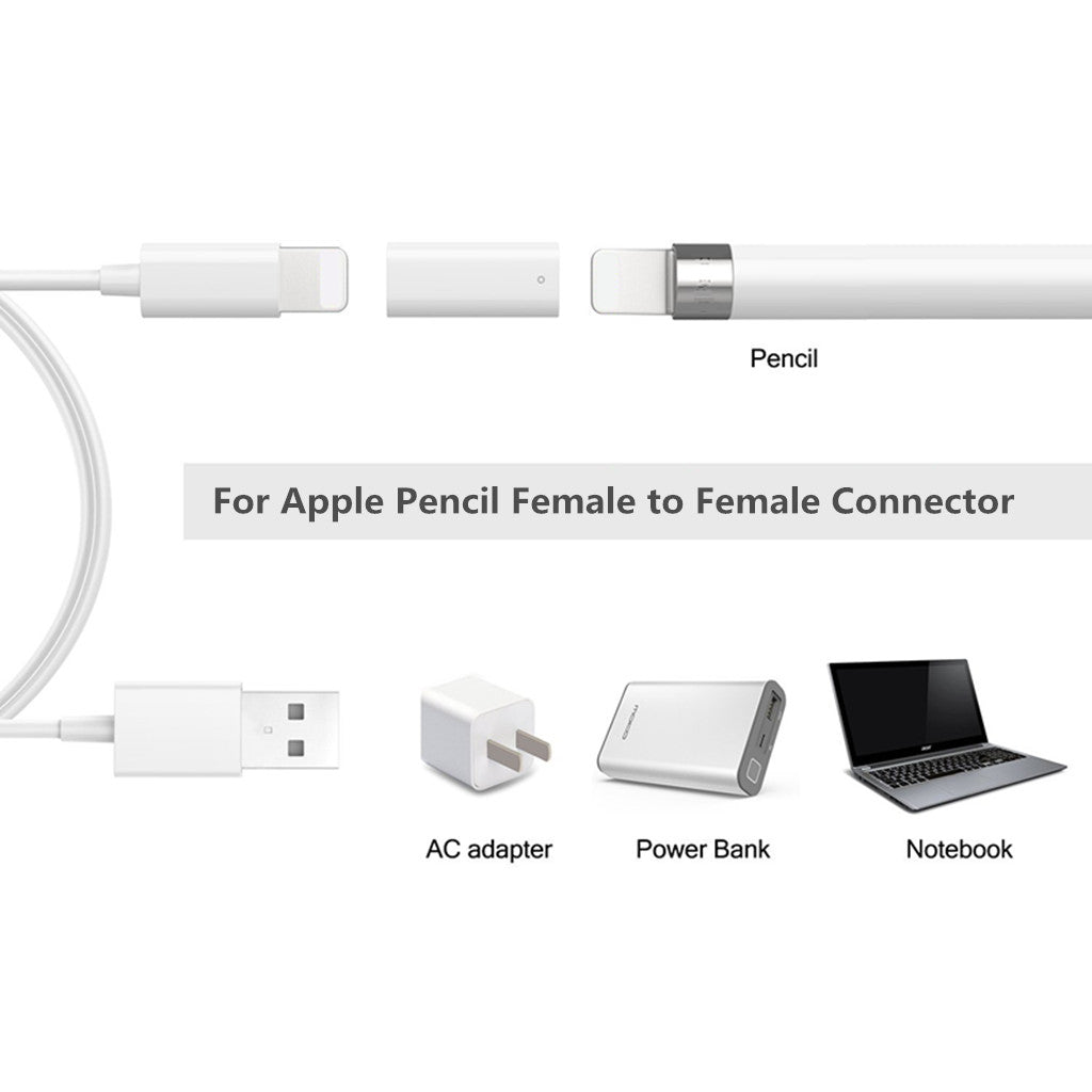 For Apple iPad Pro Pencil Charger Convertor Charge Power Cable Cord Female to Female F/F Connector White