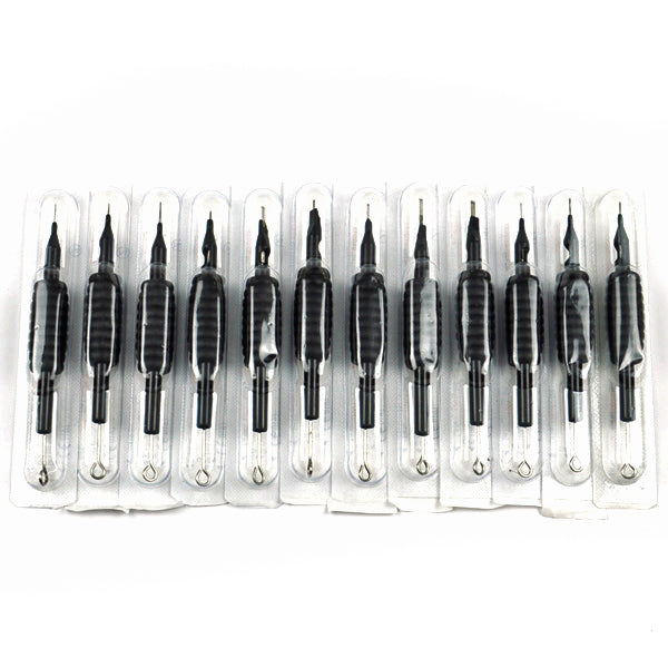12 PCS Disposable Tattoo Machine Tubes 3/4" Grips Tips with Needles - Black