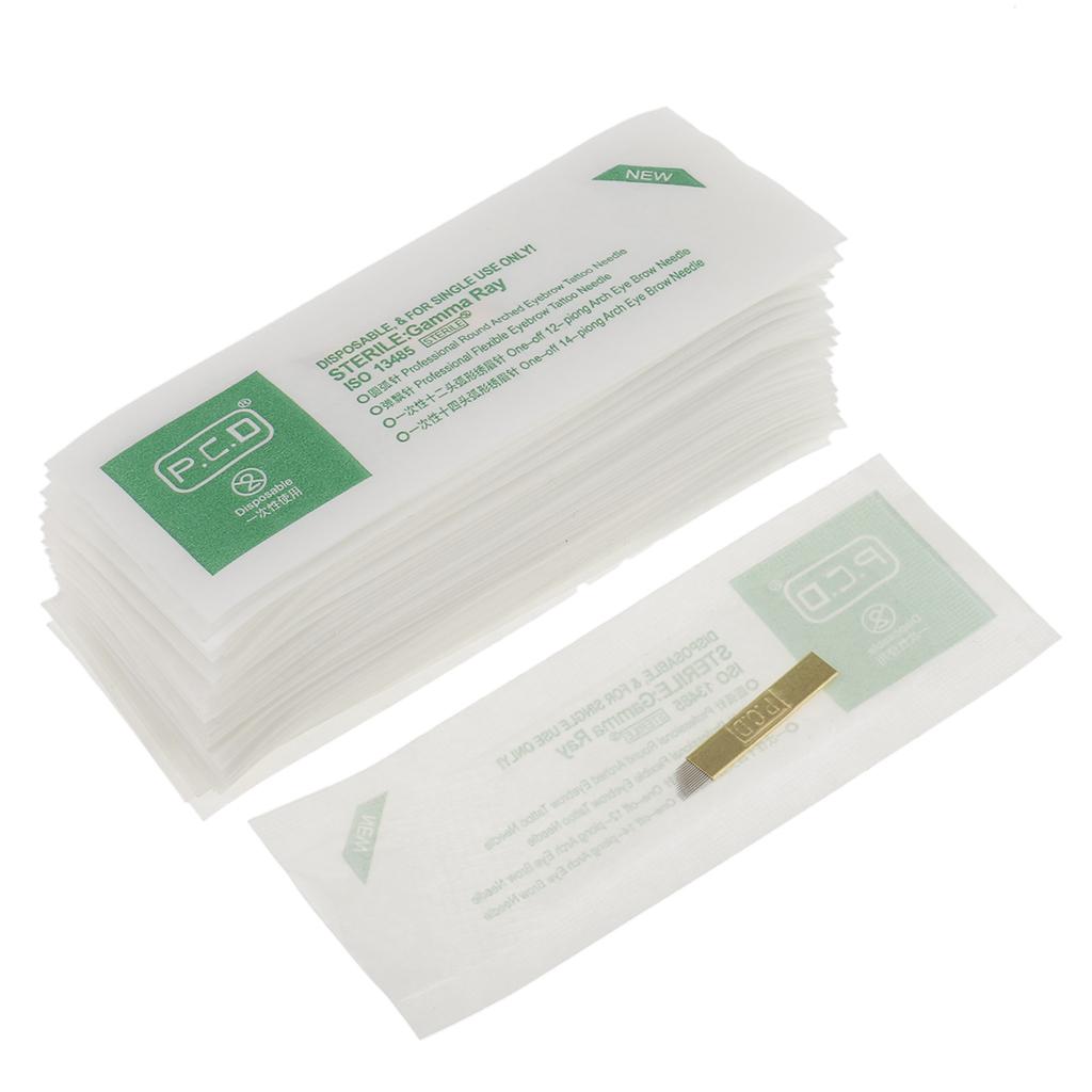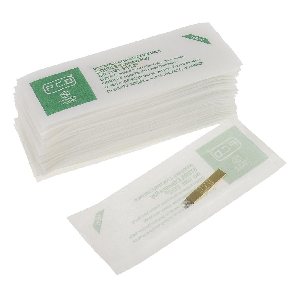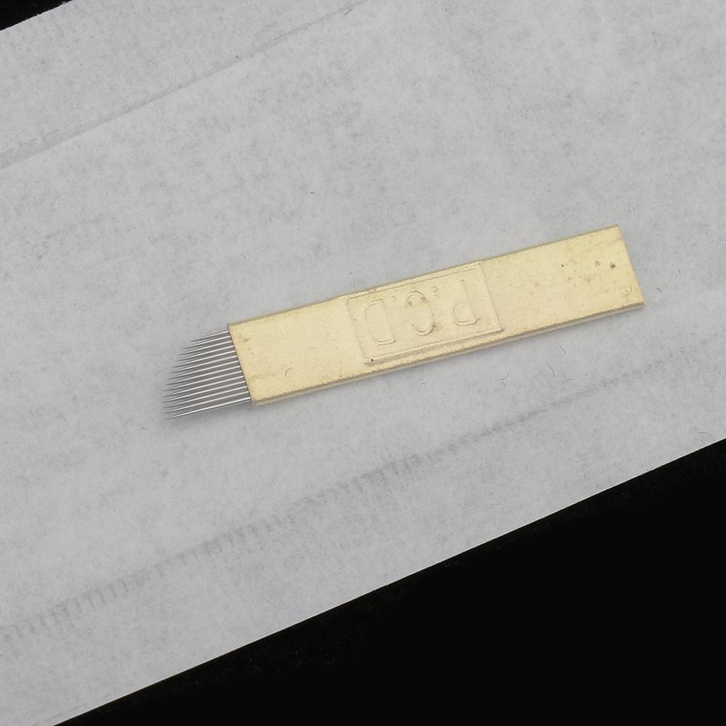 50PCS Permanent Makeup Manual Eyebrow Tattoo Bevel 14Pin Needles Gold