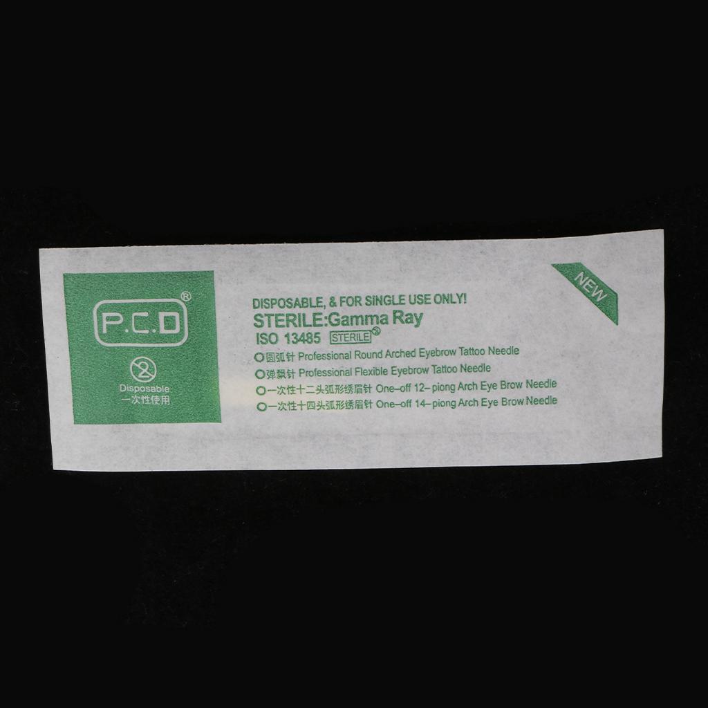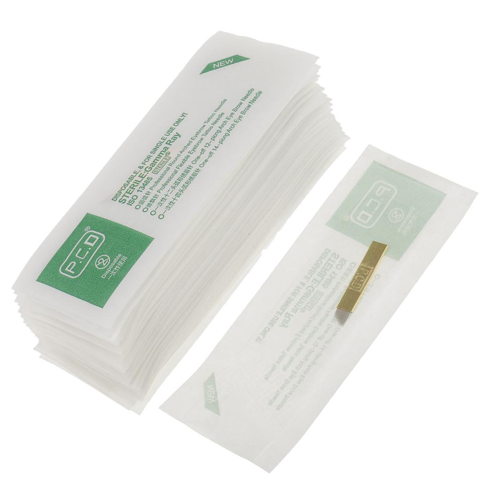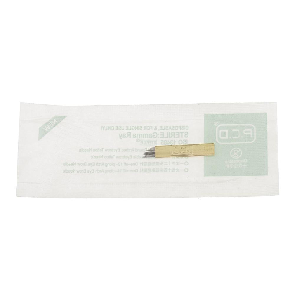50PCS Permanent Makeup Manual Eyebrow Tattoo Bevel 14Pin Needles Gold