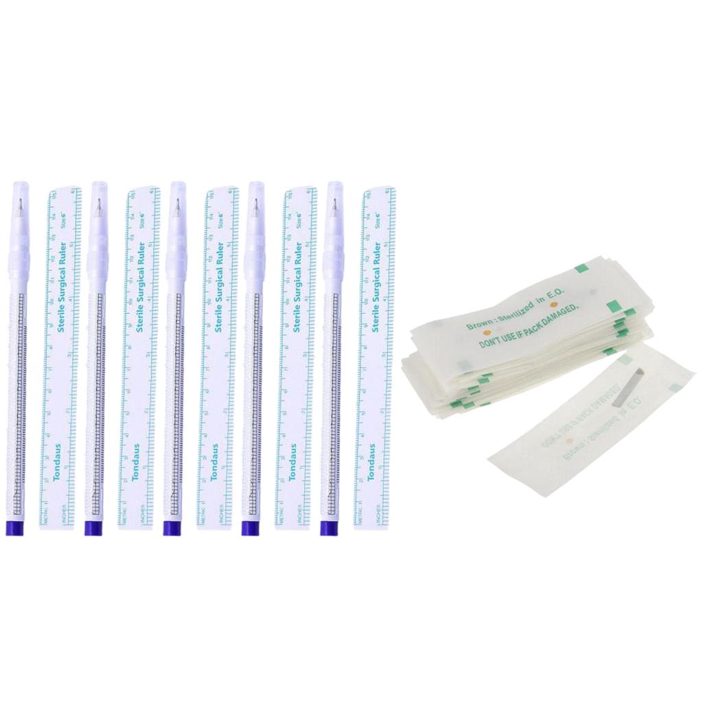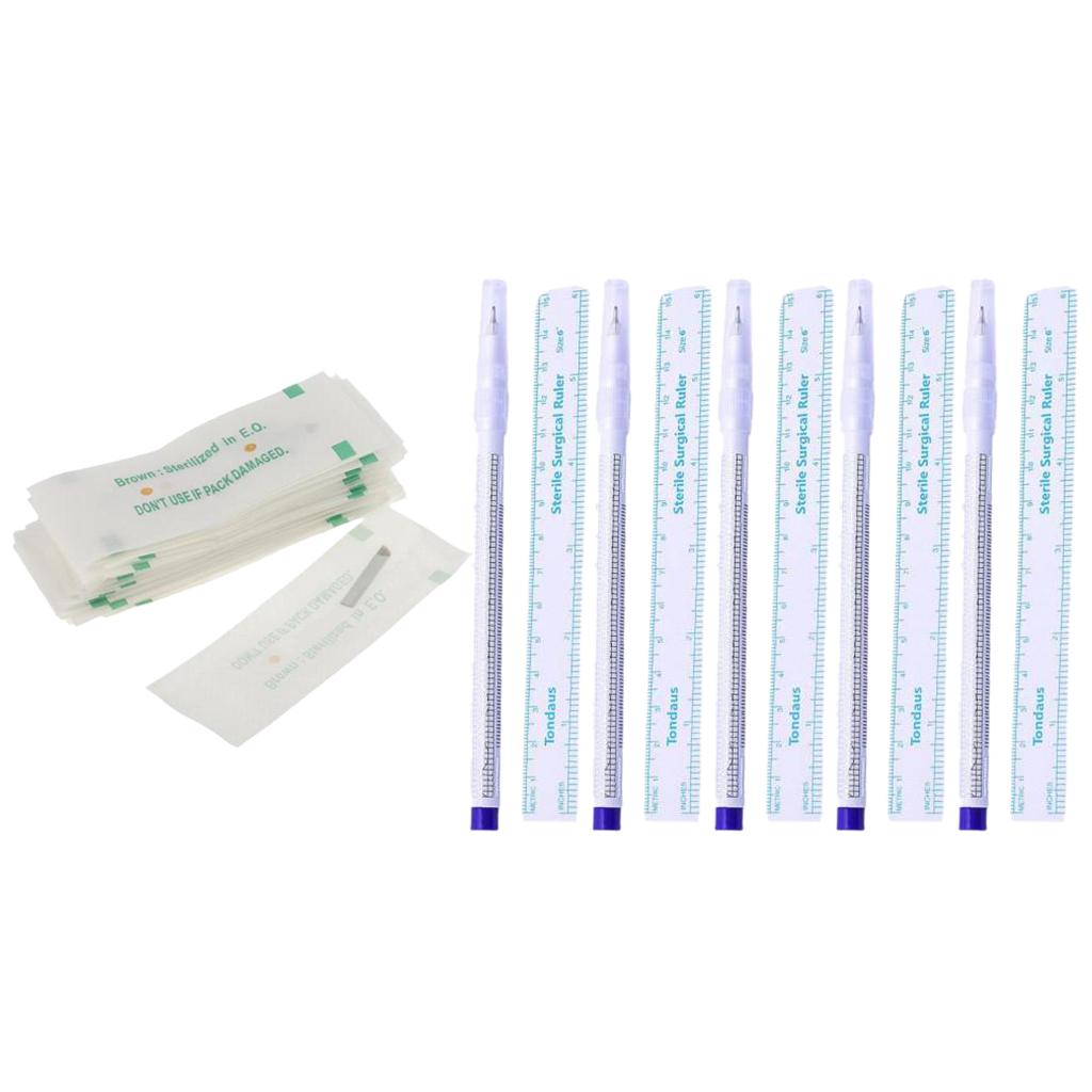 5Piece Skin Marker Scribe Pen Ruler Set + 50Piece 12Pin Microblading Needles
