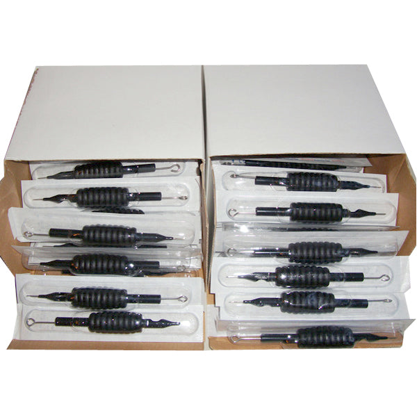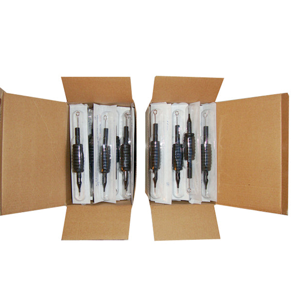 Specialized sterilized disposable tattoo needles with grips and tubes. Individual packed and pre-steriled with E.O. gas. Needles are made of 316 Medical Stainless Steel. Tubes and grips are made of rubber (plastic).These sterilized disposable tattoo needles with grips and tubes could satisfy the higher requirement of tattoo buyers.
