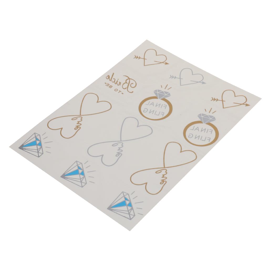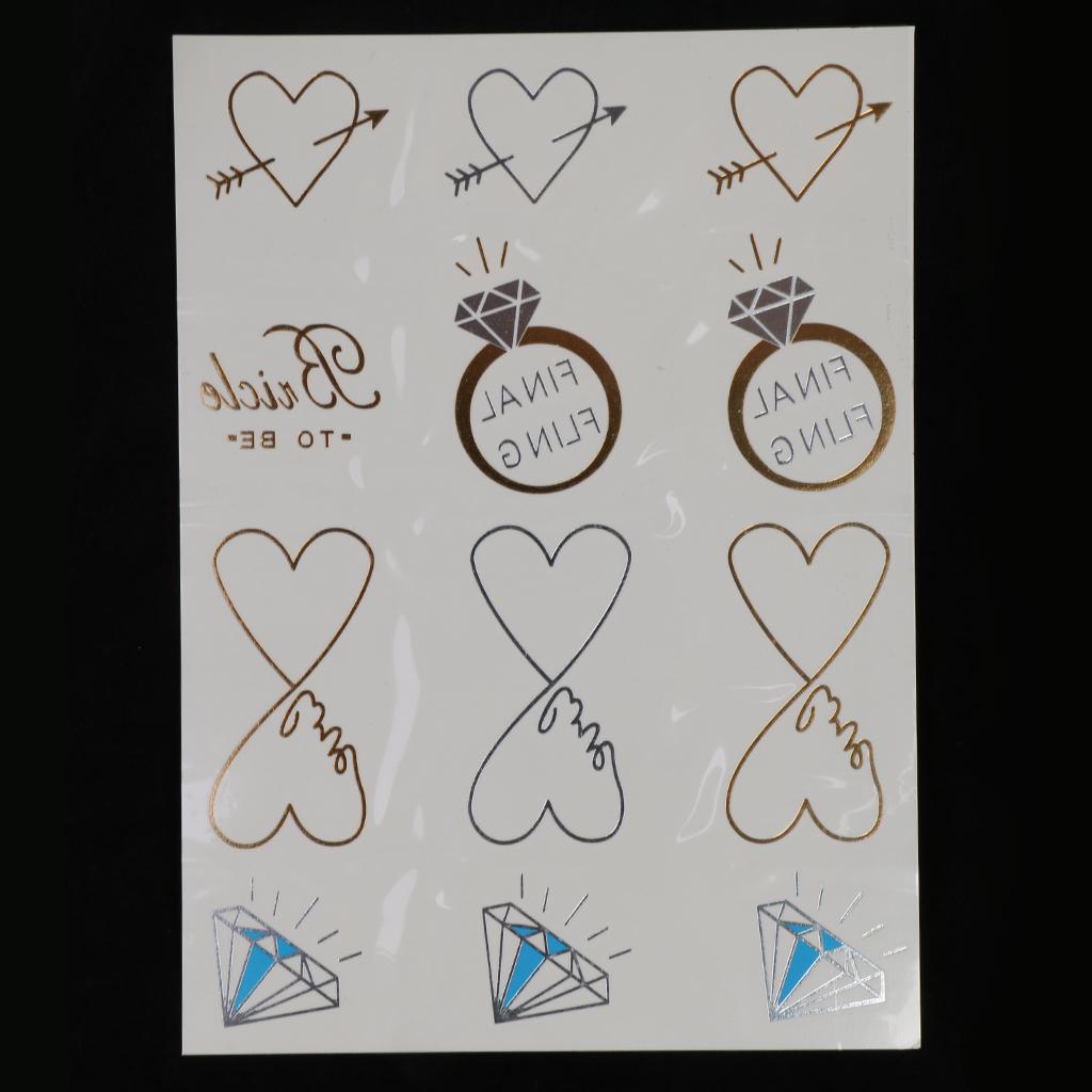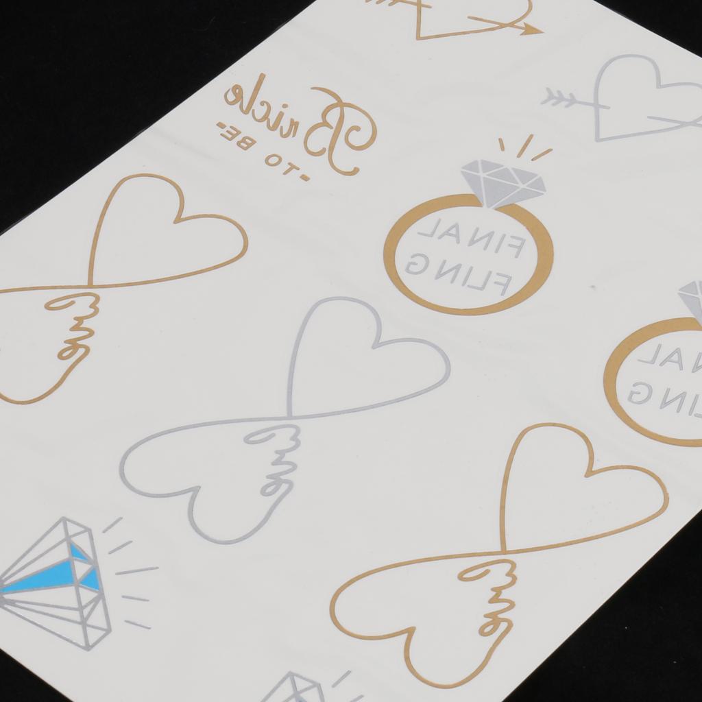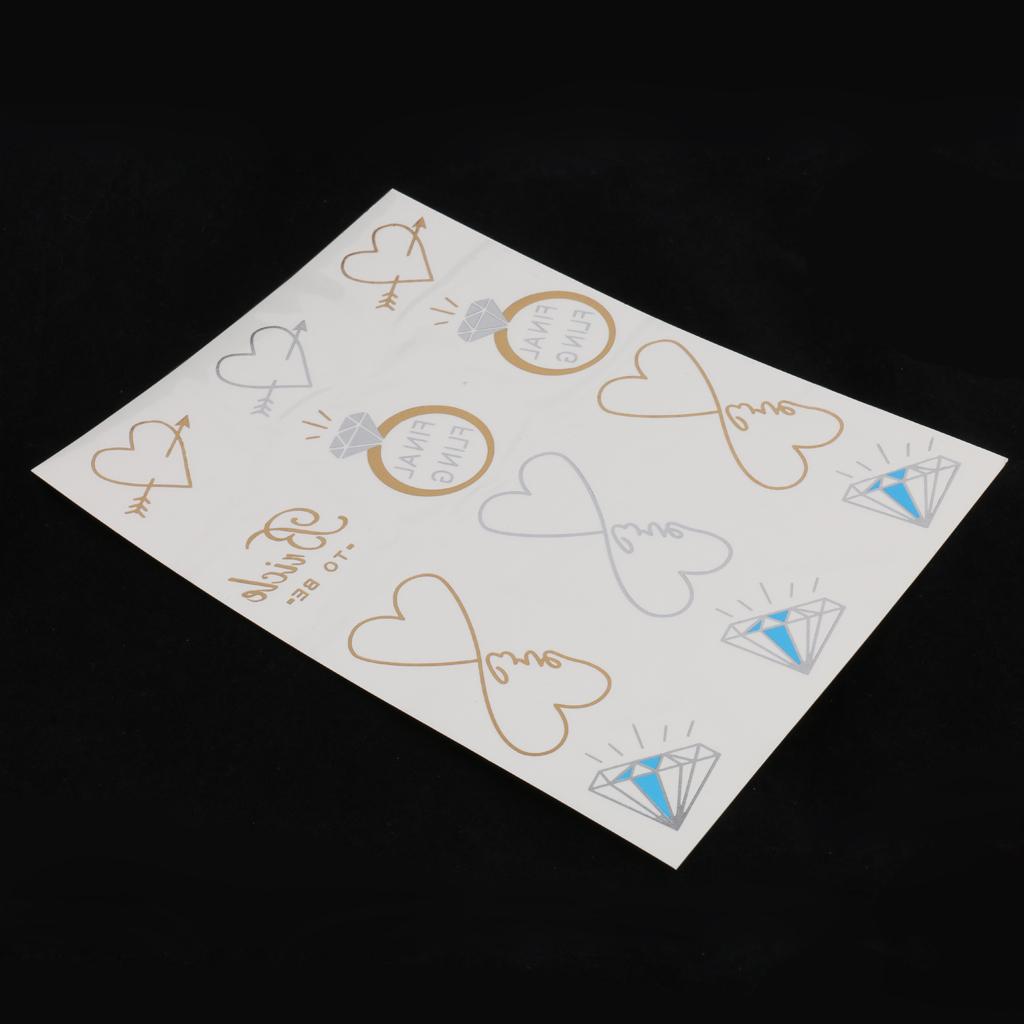 Metallic Temporary Tattoos Blue Diamond Ring Heart Sticker Bride Party DIY Body Arm Decor Removable